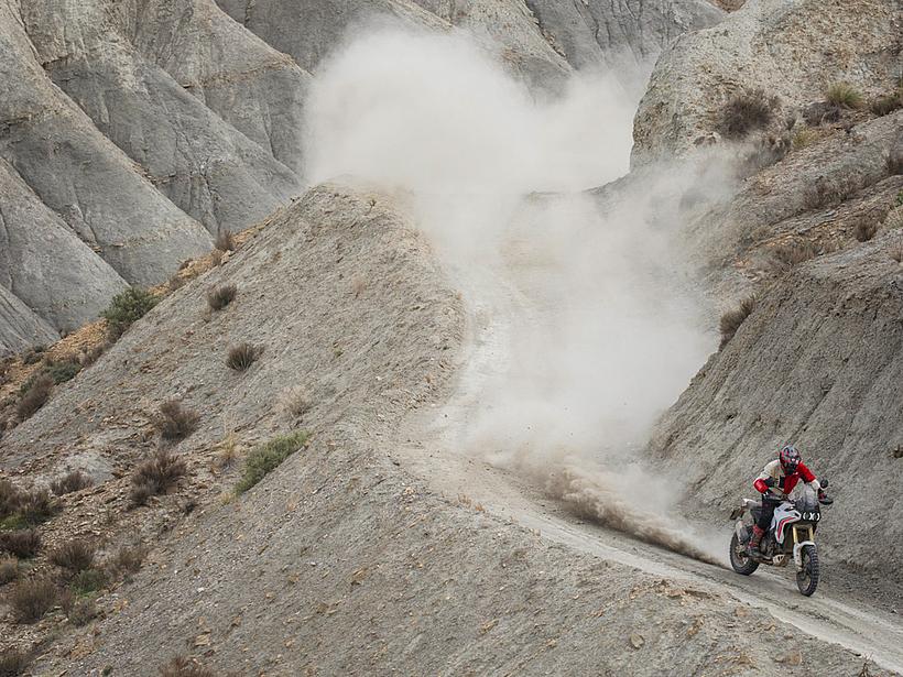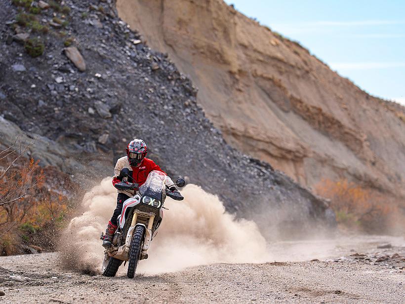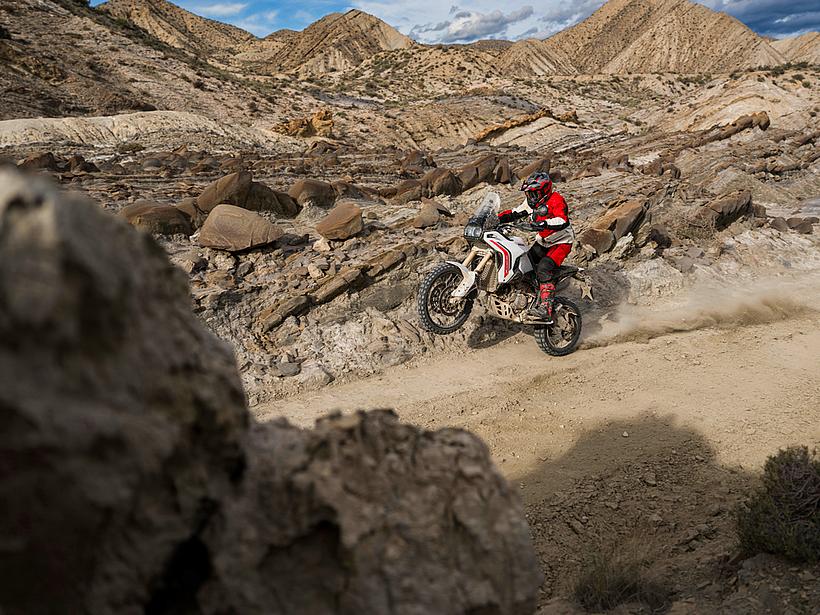 Dies ist der leistungsstärkste Riding Mode für den Einsatz im Gelände. Erfahrene Fahrer können damit die maximale Performance der DesertX im Offroad-Bereich abrufen. Der Motor leistet 110 PS, und die Gasannahme ist besonders direkt, sodass Hindernisse mit nur einem kurzen Gasstoß überwunden werden können. Die Ducati Wheelie Control (DWC) ist deaktiviert, während die Ducati Traction Control (DTC) auf ein niedriges Niveau eingestellt ist, um einen kontrollierten Schlupf des Hinterrads zu ermöglichen. Das ABS ist standardmäßig auf Stufe 1 eingestellt, kann jedoch bei Bedarf auch deaktiviert werden.