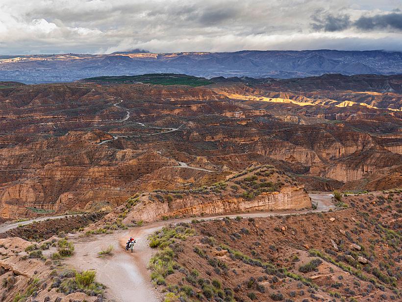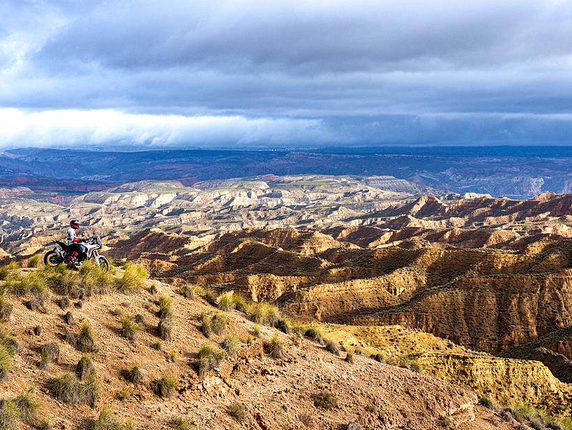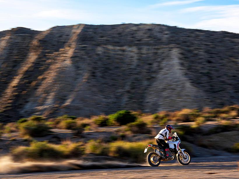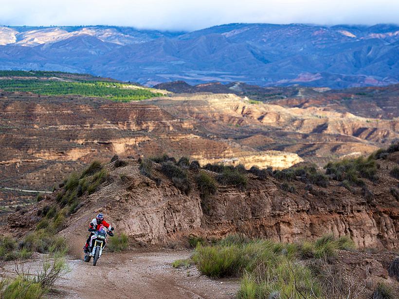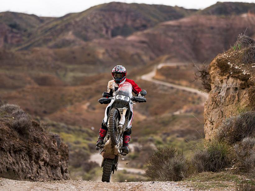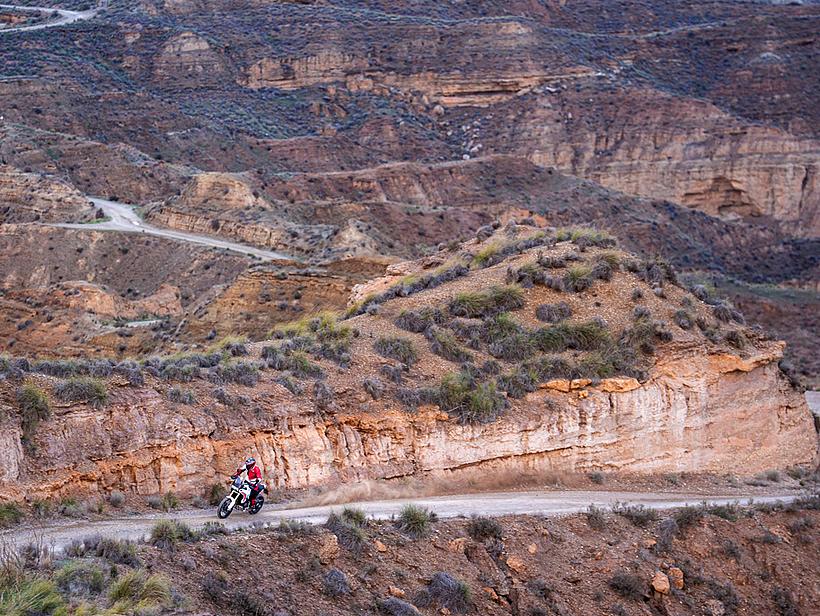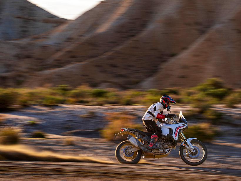 Die Getriebeübersetzungen wurden speziell für die DesertX optimiert: Der erste und zweite Gang sind kürzer übersetzt, um eine bessere Kontrolle bei niedrigen Geschwindigkeiten und kräftige Beschleunigung unter Last zu ermöglichen. Die fünfte und sechste Gänge wurden verlängert (24/27 und 26/25 statt 21/24 und 25/26), ebenso wie die insgesamt kürzere Sekundärübersetzung (15/46 statt 15/40). Dadurch sind die ersten vier Gänge kürzer übersetzt und bieten eine bessere Offroad-Tauglichkeit, während die letzten beiden Gänge länger übersetzt sind, was niedrigere Drehzahlen auf Landstraße und Autobahn ermöglicht – für spürbar höheren Komfort und geringeren Verbrauch.