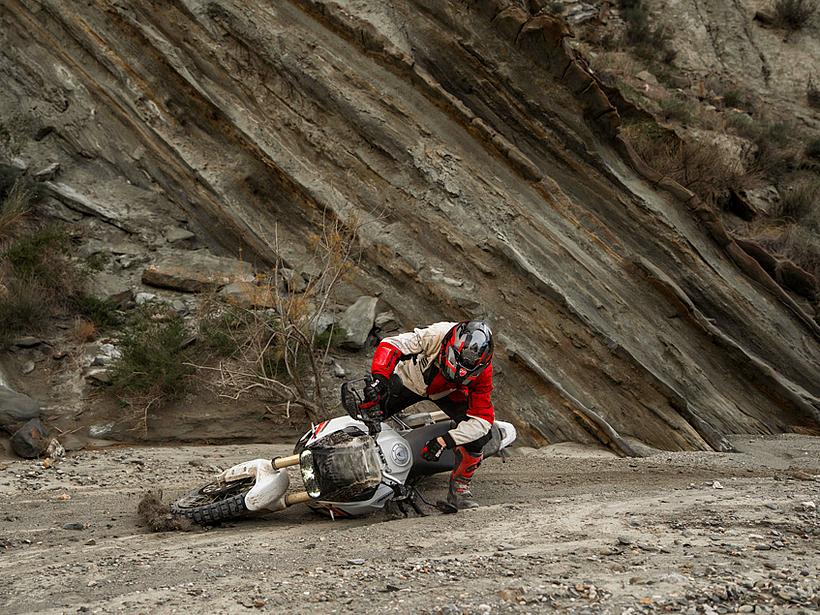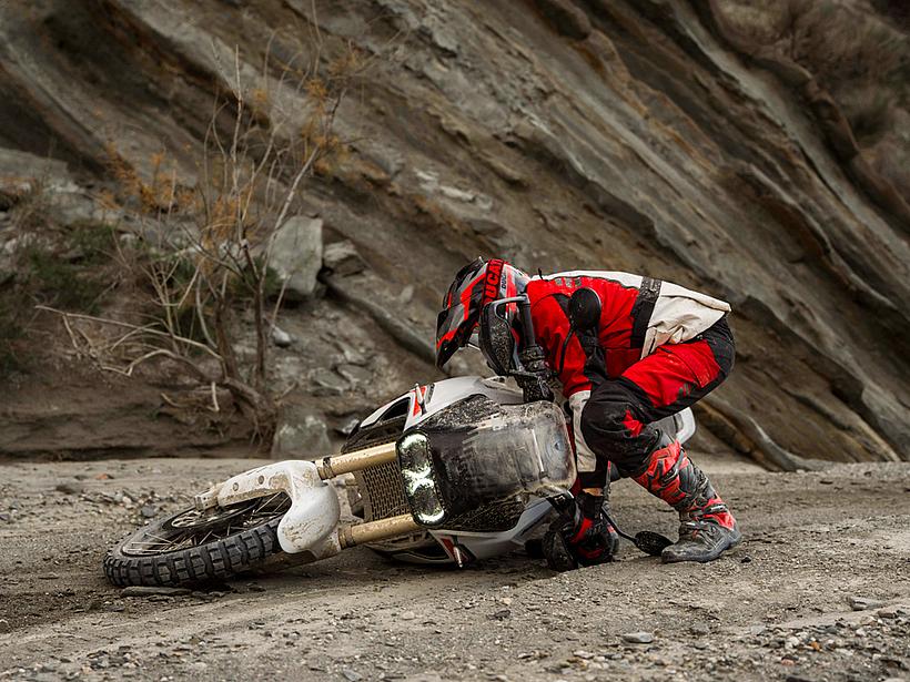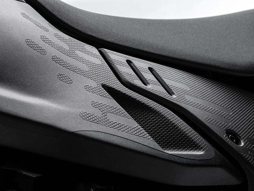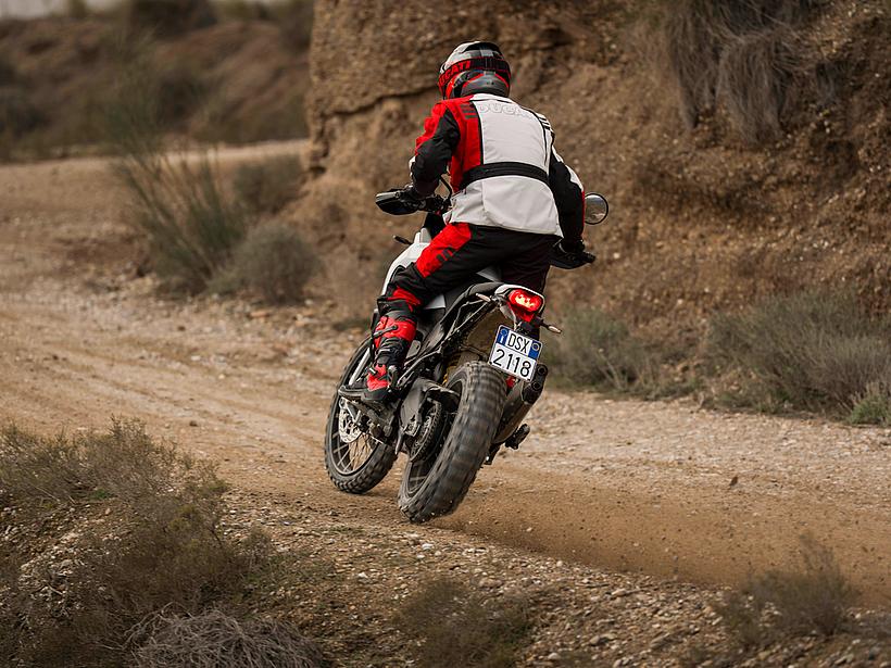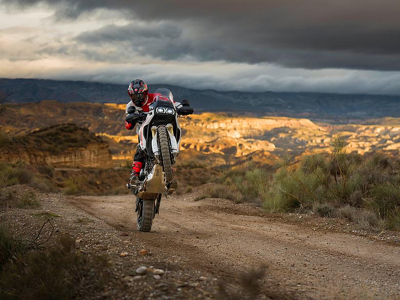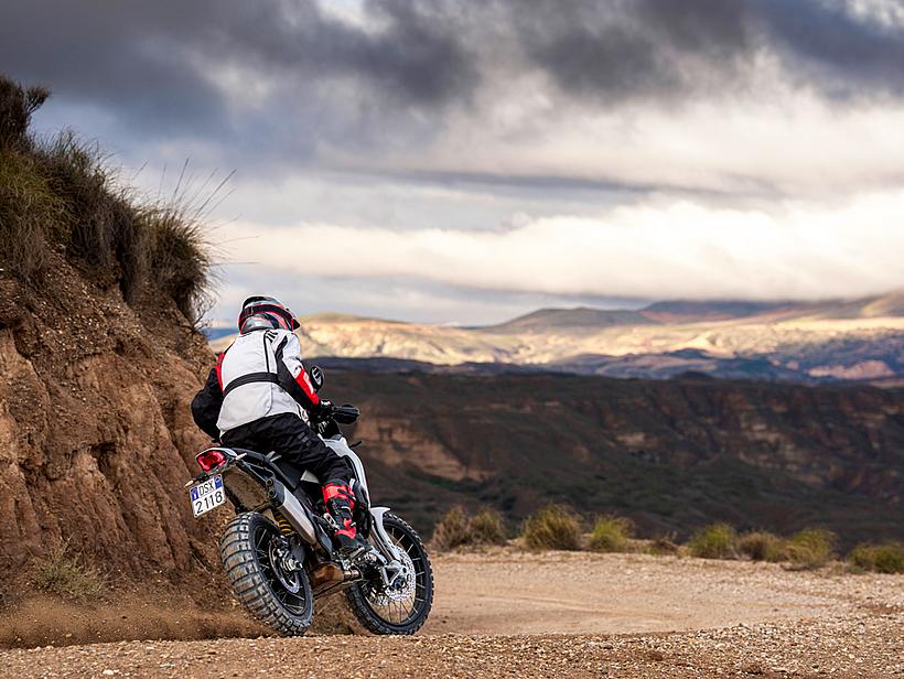 Die Sitzposition und Ergonomie wurden speziell für ein Adventure-Bike optimiert: Ein breiter Lenker, eine schlanke Bauweise und eine Ergonomie, die auch das Fahren im Stehen ermöglicht, sorgen für maximale Kontrolle im Gelände und exzellentes Handling auf der Straße. Das neue Ergonomiedreieck entsteht durch nach hinten versetzte Fußrasten sowie eine nach vorn verlegte Sitzbank und Lenker. Das Ergebnis ist eine aktivere, weniger sitzende Fahrerhaltung, die sportliches Fahren und eine verbesserte Kontrolle im Offroad-Einsatz fördert. Der neue 18-Liter-Kraftstofftank aus Polymer ist schlanker und leichter, was mehr Bewegungsfreiheit bietet. Dank schützender Crashpads ist das Motorrad besonders widerstandsfähig gegenüber den für den Offroad-Einsatz typischen Stürzen bei niedrigen Geschwindigkeiten. Der Tank ist zudem tief platziert, wodurch der Schwerpunkt des Motorrads gesenkt wird, was das Handling und die Manövrierbarkeit verbessert. Der vordere Kotflügel ist im Vergleich zum Vorgängermodell höher positioniert, wodurch mehr Abstand zum Reifen entsteht und Schlamm sowie Schmutz im Gelände besser passieren können, ohne das Vorderrad zu blockieren.
