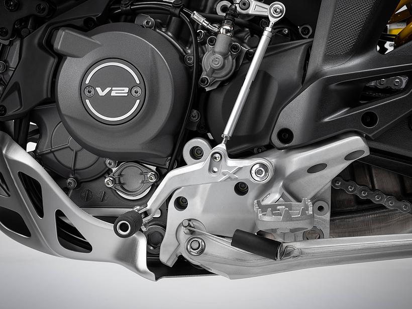 In dieser Konfiguration ist der neue Ducati-V2-Motor mit einer Lichtmaschine ausgestattet, die um 150 Watt leistungsstärker ist, um selbst die höchsten elektrischen Anforderungen eines Reisemotorrads zu erfüllen. Zudem wurde das Gewicht des Schwungrads erhöht, was zu einer Steigerung der Schwungmasse um 12 % führt. Dies sorgt für ein sanfteres Ansprechverhalten und einen ruhigeren Motorlauf bei niedrigen Drehzahlen. Im Vergleich zur sportlicheren Variante steigt das Gewicht des Motors um 0,51 kg.