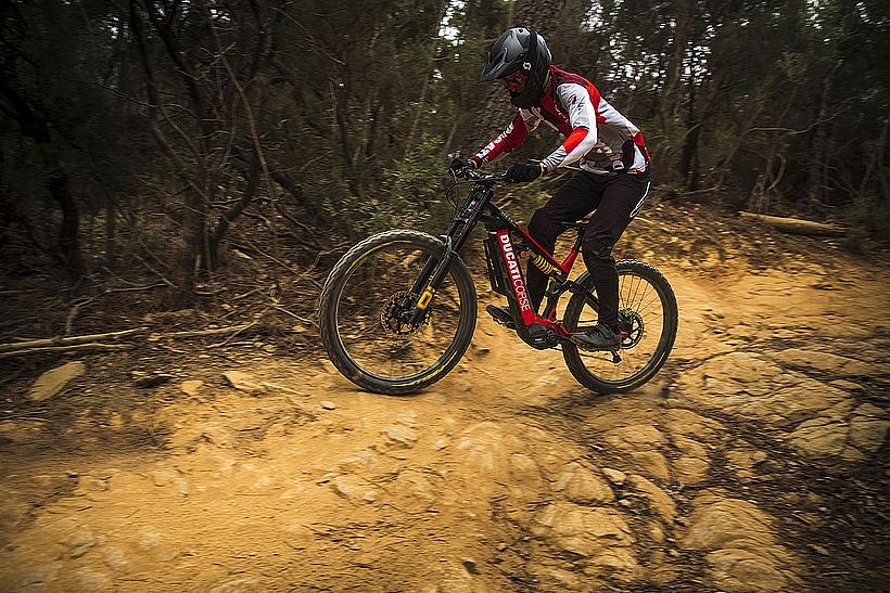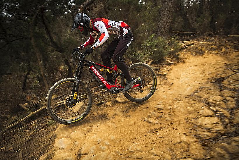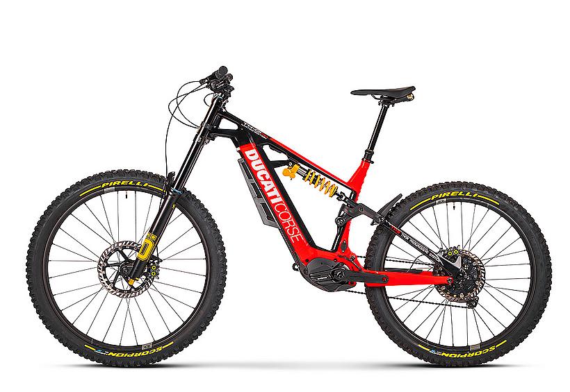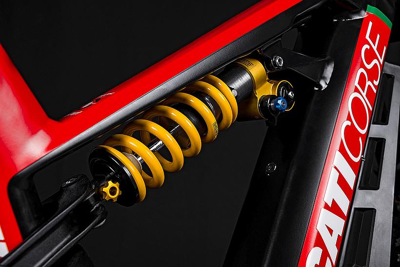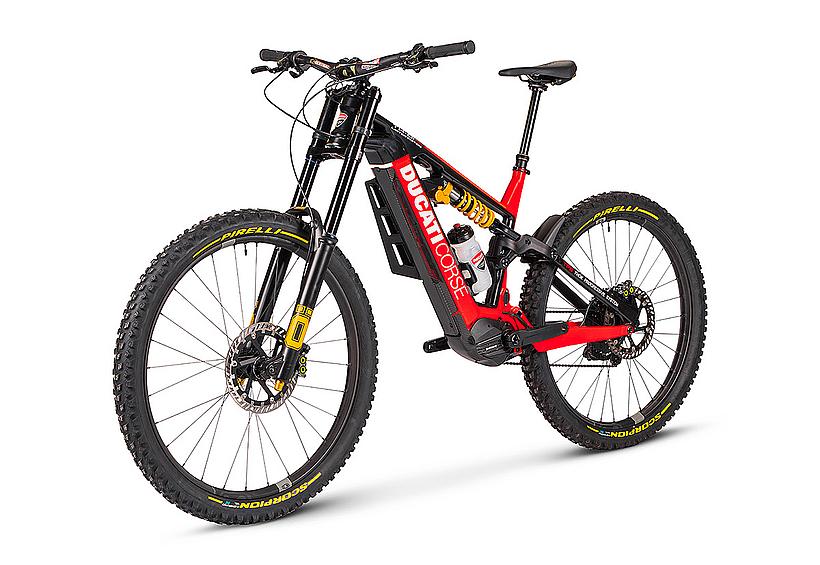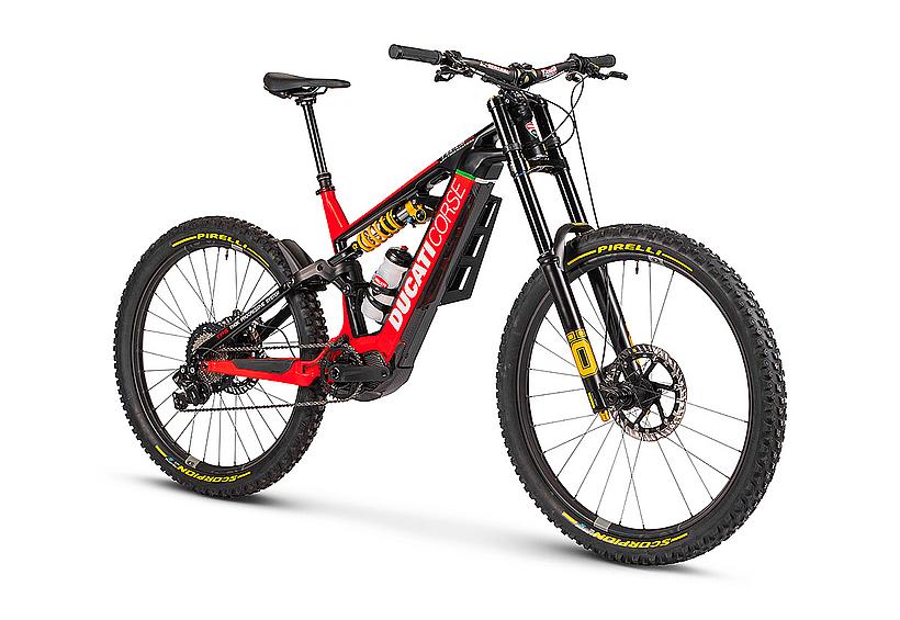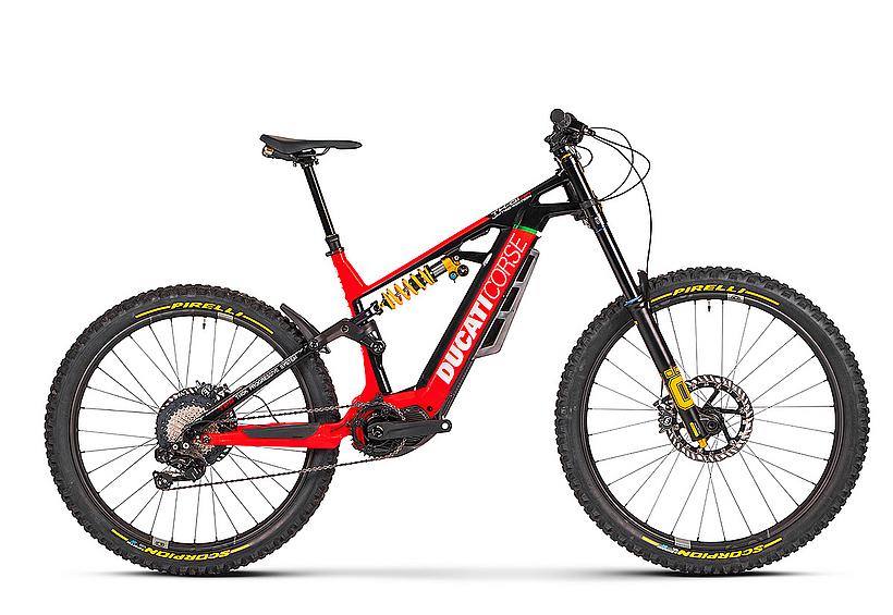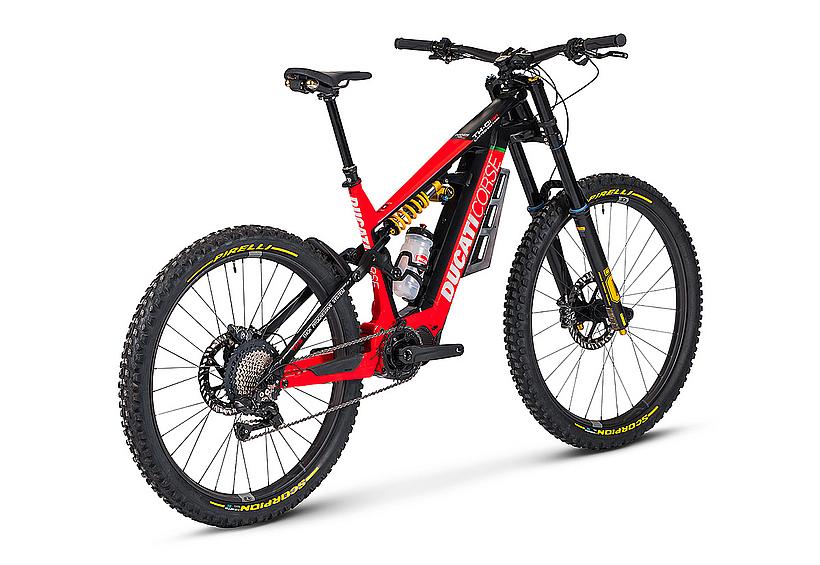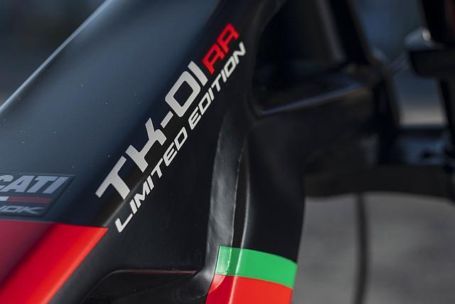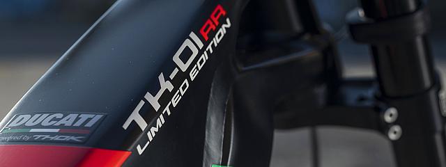Das TK-01 RR Limited Edition ist ein exklusives E-Bike auf Basis des TK-01 RR, das in einer begrenzten Stückzahl von nur 169 Stück produziert wird. Es enthält die wichtigsten Merkmale des TK-01RR und verfügt über noch hochwertigere Komponenten, wie die Öhlins DH38 Triple Clamp Race-Gabel, mehrfacher Preisträger im Downhill MTB World Cup. Zusätzlich verpasst Ducati seinem Flagship Crankbrothers Synthesis-Carbon-Laufräder, die elektronische Shimano Deore XT Di2 11S Schaltgruppe, und eine Magura MT7 Bremsanlage mit einer 220 mm Bremsscheibe vorne...