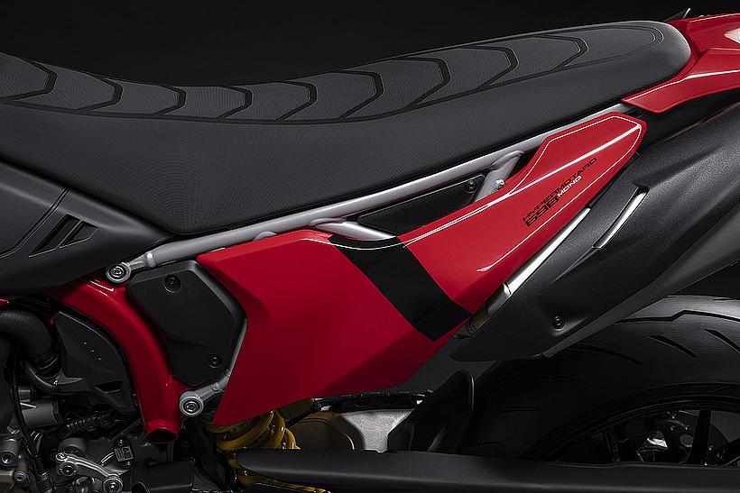 Für Ducati-Enthusiasten, die die Performance der Hypermotard 698 Mono on Track erleben möchten, bietet der Ducati Performance Katalog eine breite Palette an originalen Zubehörteilen. Dazu gehören der Termignoni Rennauspuff, eine Rennsitzbank, Motard-Fußrasten sowie Slider und Schutzabdeckungen für das Motorgehäuse. Darüber hinaus sind zahlreiche Kohlefaserkomponenten verfügbar, die dazu beitragen, das Ducati-Einzylinder-Motorrad noch leichter zu gestalten, von einem Hitzeschild für den Auspuffkrümmer bis zu einem homologierten Schalldämpfer aus Titan und Kohlefaser. Für diejenigen, die ihre Hypermotard verschönern möchten, stehen verschiedene aus dem Vollen gefräste Aluminiumteile zur Verfügung, darunter Brems- und Kupplungshebel, die entsprechenden Behälter, den Tankdeckel und dynamische LED-Blinker.
