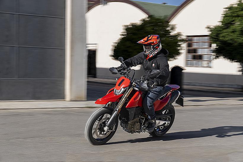 Die Hypermotard 698 Mono ist ein Motorrad, das leicht zu fahren, spaßig und stilvoll ist und gemeinsam mit einer eigenen Bekleidungslinie auf den Markt kommt. Die Jacke „Overlay Yo“ ist das Herzstück der Kollektion. Sie zeichnet sich durch ihr modernes und originelles Design aus, das in Zusammenarbeit mit Drudi Performance entwickelt wurde, kombiniert ein transparentes Außenmaterial mit einem thermoregulierenden 3D-Mesh. Die äußerst vielseitige Jacke, hergestellt von Spidi Sport, kann sogar mit einer Airbag-Schutzweste kombiniert werden. Die Kollektion wird durch ein Sweatshirt ergänzt, das dank technischer Gewebeverstärkungen und CE-Protektoren an Schultern und Ellbogen auch für den Einsatz auf Motorrädern zertifiziert ist. Als perfekte Ergänzung steht ein spezieller Helm im aggressiven Supermotard-Look zur Verfügung, ebenso wie Stiefel, die speziell für den Motard-Einsatz entwickelt wurden, und Sportschuhe für den täglichen Gebrauch auf dem Motorrad.