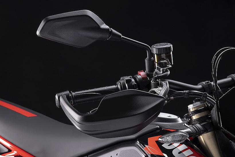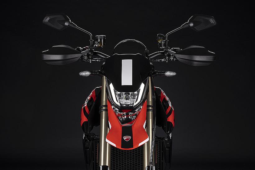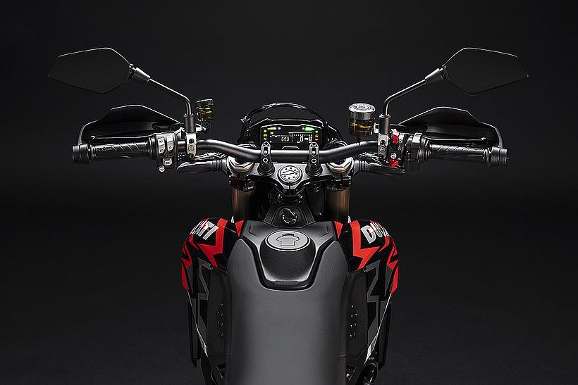 Alle Funktionen der Hypermotard 698 Mono werden über das Instrumentenpanel mit einem 3,8-Zoll-LCD-Display gesteuert. Extrem kompakt, fügt sich dieses perfekt hinter die Scheinwerferverkleidung ein. Speziell für Ducati entwickelt, nutzt das Display die IBN-Technologie (Improved Black Nematic) mit weißen Zeichen auf schwarzem Hintergrund, um einen hohen Kontrast und damit eine hervorragende Lesbarkeit in allen Fahrbedingungen zu gewährleisten. Wie bei der Panigale V4 verfügt auch die Hypermotard 698 Mono über Schalt- und Drehzahlbegrenzeranzeigen.