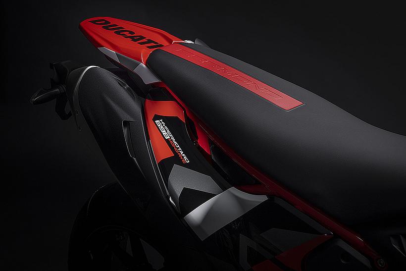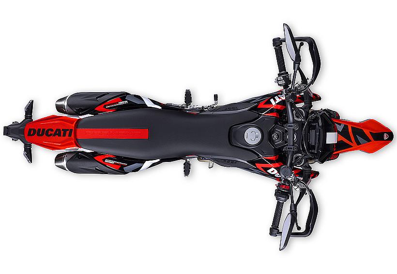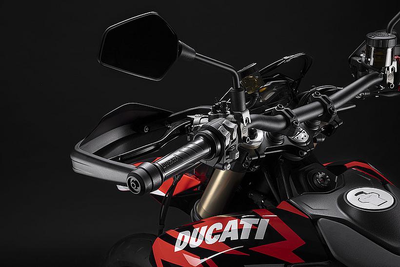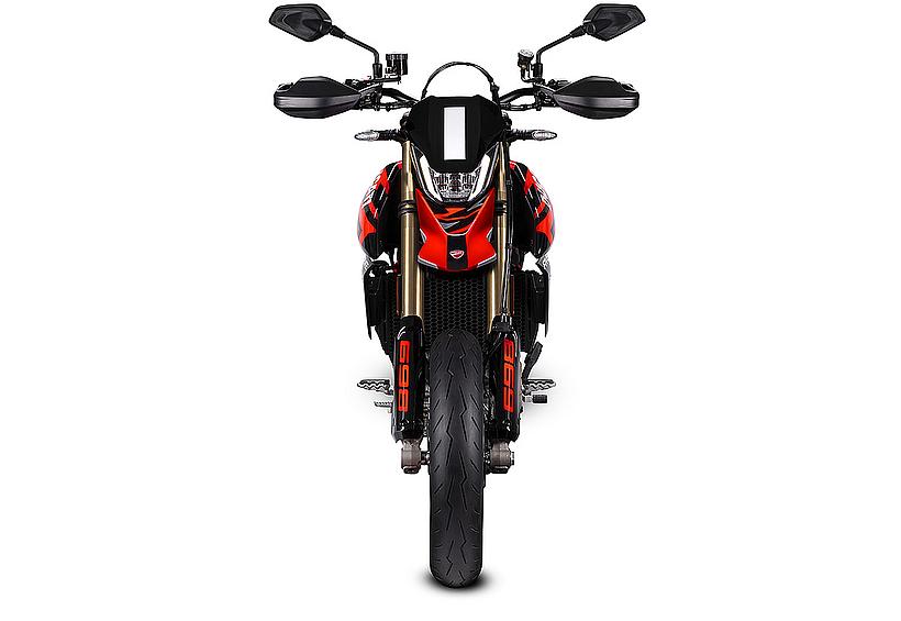 Für Ducati-Enthusiasten, die die Performance der Hypermotard 698 Mono on Track erleben möchten, bietet der Ducati Performance Katalog eine breite Palette an originalen Zubehörteilen. Dazu gehören der Termignoni Rennauspuff, eine Rennsitzbank, Motard-Fußrasten sowie Slider und Schutzabdeckungen für das Motorgehäuse. Darüber hinaus sind zahlreiche Kohlefaserkomponenten verfügbar, die dazu beitragen, das Ducati-Einzylinder-Motorrad noch leichter zu gestalten, von einem Hitzeschild für den Auspuffkrümmer bis zu einem homologierten Schalldämpfer aus Titan und Kohlefaser. Für diejenigen, die ihre Hypermotard verschönern möchten, stehen verschiedene aus dem Vollen gefräste Aluminiumteile zur Verfügung, darunter Brems- und Kupplungshebel, die entsprechenden Behälter, den Tankdeckel und dynamische LED-Blinker.