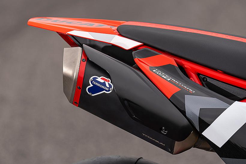 Die Leistung und das Drehmoment des Superquadro Mono können durch die Montage der im Ducati Zubehörprogramm erhältlichen Termignoni Racing Auspuffanlage um weitere 7 PS gesteigert werden, was zu beeindruckenden 85 PS führt. Dies geht mit einem zusätzlichen Drehmoment von 4 Nm und einem noch deutlich dynamischeren Ansprechverhalten einher. Darüber hinaus ist es unkompliziert möglich, die Leistung auf 43,5 PS zu reduzieren, um die Anforderungen der Führerscheinklasse A2 (Leichtmotorrad) zu erfüllen.