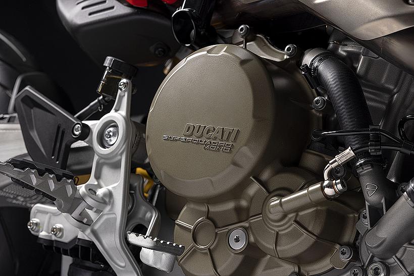 Die kurzhubige Auslegung mit großer Bohrung und dem Einsatz der Desmodromik ermöglicht dem Superquadro Mono Motor beeindruckend hohe Drehzahlen. Der rote Bereich beginnt bei 10.250 U/min, eine Drehzahl, die bei Rennmotoren zu finden ist, jedoch von keinem Serien-Einzylindermotor erreicht wird. Der neue Superquadro Mono zeichnet sich nicht nur durch seine beeindruckende Drehfreudigkeit aus, sondern ist auch der leistungsstärkste Serien-Einzylinder. Er liefert eine maximale Leistung von 77,5 PS bei 9.750 U/min und ein Drehmoment von 63 Nm bei 8.000 U/min. Dieser Motor bietet auch bei niedrigen Drehzahlen eine beeindruckende Menge an Drehmoment, ab 3.000 U/min sind bereits 70% des maximalen Drehmoments verfügbar. Das breite Drehzahlband und die lineare, gleichmäßige Leistungsabgabe sind weitere herausragende Merkmale des Superquadro Mono der zwischen 4.500 U/min und 10.250 U/min konstant mehr als 80% des maximalen Drehmoments abliefert.