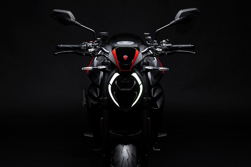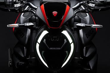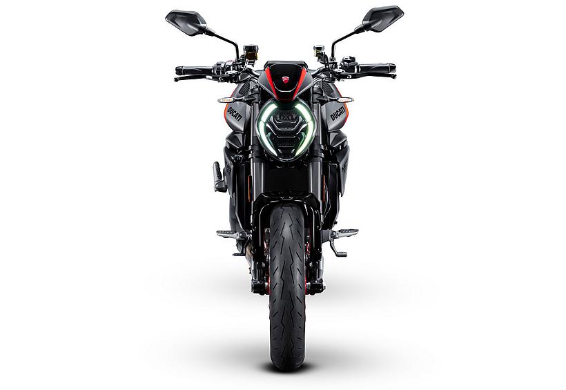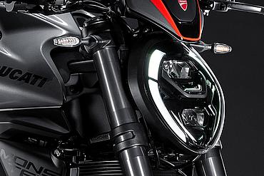 Der Scheinwerfer, der im Motorraddesign das wahre Gesicht des Motorrads ist, ist vollständig in LED-Technik ausgeführt, wirkt roboterhaft und modern und ist extrem kompakt, um die Frontpartie kurz zu halten und „zwischen den Schultern“ des Kraftstofftanks „versenkt“ zu sein. Letzterer ist ein entscheidendes Designelement, seit jeher das markanteste Merkmal der Monster.