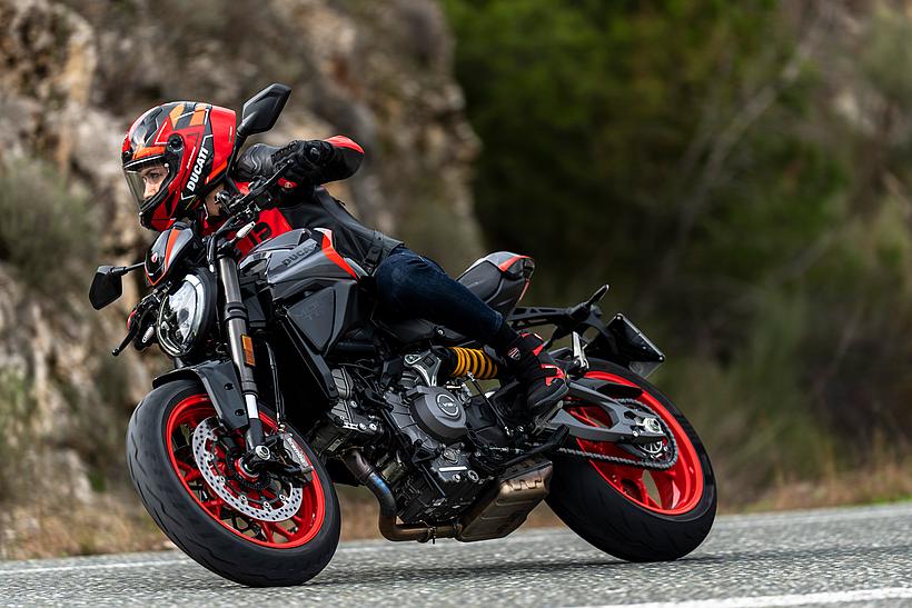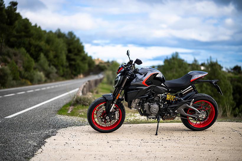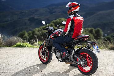 Die Monster ist mit leichten Leichtmetallfelgen in den Dimensionen 3,50 x 17 vorne und 5,50 x 17 hinten ausgestattet, die mit Pirelli Diablo Rosso IV-Reifen in den Größen 120/70 und 180/55 bereift sind. Die vierte Generation der Pirelli-Reifen, der Diablo Rosso IV, bietet nicht nur außergewöhnlichen Grip, sondern auch präzises Feedback und hervorragende Fahrzeugkontrolle – sowohl auf trockenen als auch auf nassen Straßen.