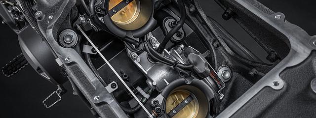 Benzineinspritzung, 52 mm Drosselklappenkörper, eine Einspritzdüse pro Zylinder, Full-Ride-By-Wire Technologie