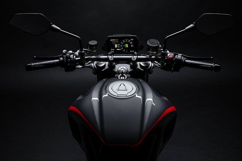 Die neue Monster ist mit moderner, hochentwickelter Elektronik ausgestattet, die auf einer 6-Achs-Trägheitsmessplattform basiert. Das Elektronikpaket der Monster umfasst Kurven-ABS, Ducati Traction Control (DTC), Ducati Wheelie Control (DWC), Ducati Quick Shift (DQS) 2.0 und Engine Brake Control (EBC). Die Parameter jedes Assistenzsystems sind mit den vier Riding Modes (Sport, Street, Urban und Wet) verknüpft. Die Fahrerin bzw. der Fahrer kann diese Parameter individuell an den eigenen Fahrstil anpassen.