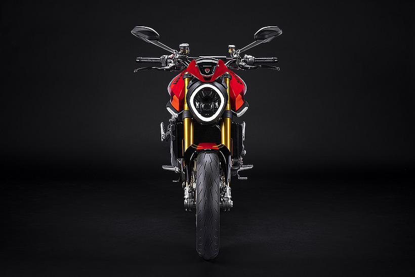 Eine Monster benötigt keinen traditionellen Rahmen mehr. Das Trockengewicht der neuen Monster (Modellabhängig) liegt knapp bei 165 kg, ein Wert, der mit einem herkömmlichen Stahlrohrrahmen gar nicht erreichbar gewesen wäre. Wie bei der Panigale V4 und Multistrada V4 sind Motor und Lenkkopf über ein Aluminium-Monocoque-Element miteinander verbunden, dessen hohles Inneres den Luftfilterkasten bildet und nach oben durch den Tank abgedichtet wird. Bei diesem „Front-Frame-Layout“ kommt es zu einer Trennung der Torsionssteifigkeit und der seitlichen Steifigkeit, um die richtige Reaktion auf die auf den Rahmen übertragenen Belastungen zu erhalten und besser absorbieren zu können. Im Verbund mit dem speziell dafür ausgelegten Motor ergibt sich eine extrem verwindungssteife Einheit, an die Lenkkopf und Heckrahmen angeschraubt sind. Das Ergebnis: Geringere Baubreite und eine deutliche Gewichtsreduktion. Der neue Rahmen ist um 60% leichter als der Rahmen des Vorgängermodells und wiegt gerade einmal 3 Kilogramm. Der neue Rahmen, aber auch die sorgfältige Positionierung einiger Teile, wie z.B. des Kühlers, haben eine weitere große Verbesserung gegenüber dem Vorgängermodell Monster 821 ermöglicht, nämlich 36° Lenkeinschlag und, genauer gesagt, 7° mehr als bei der bisherigen Version. Dank dieser technischen Lösung sind die Monster wendiger denn je im Stadtverkehr und auch beim Richtungswechsel sind sie nun einfacher und intuitiver zu bedienen.