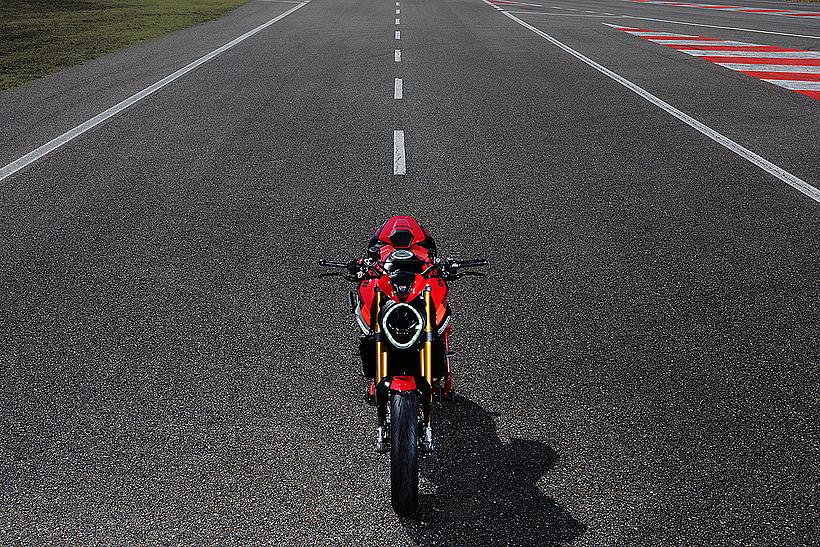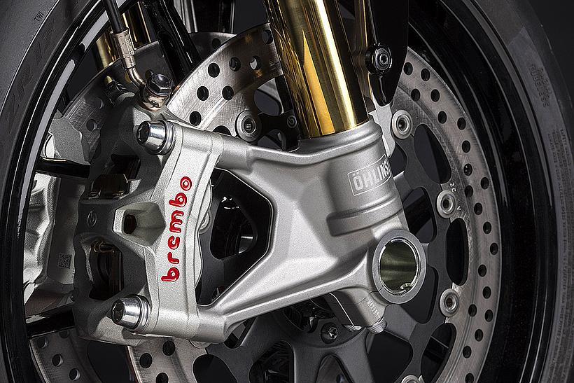 Die Bremsanlage ist leistungsstärker und besser dosierbar dank der Verwendung von Brembo Stylema® Radial-Bremssätteln, die vorne auf 320 mm Bremsscheiben mit Aluminiumadapter wirken. Diese Änderungen verhelfen dem Motorrad zu mehr Bremsleistung, aber auch zu einer verbesserten Agilität dank der Reduzierung der ungefederten Massen: Die Stylema®-Bremssättel führen zu einer Gewichtseinsparung von 0,4 kg, die Innenringe aus Aluminium sparen weitere 0,5 kg ein.
