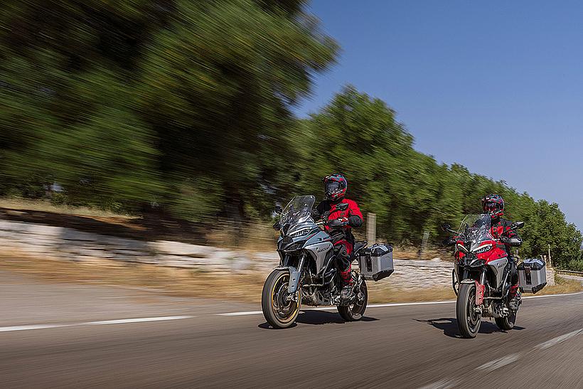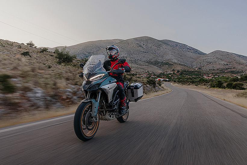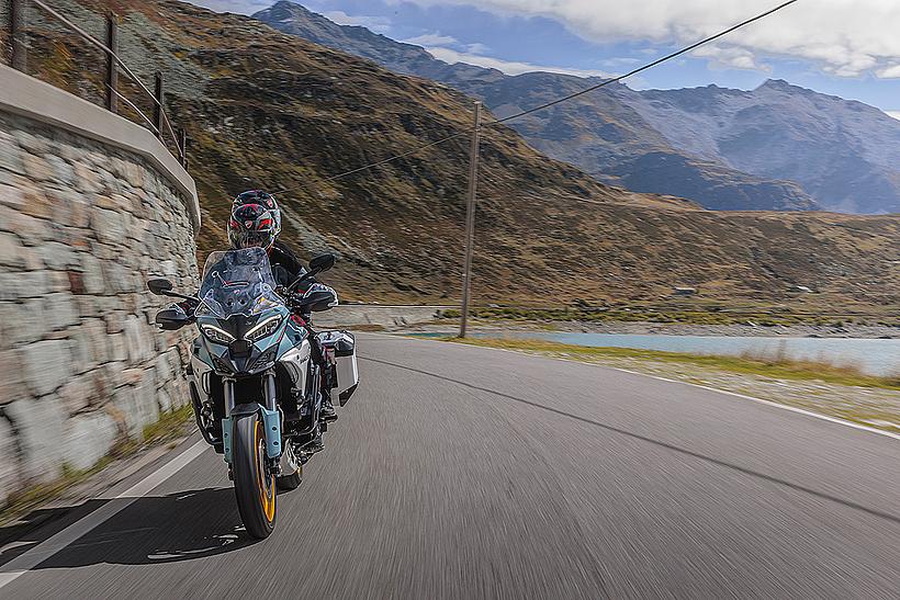 Der Motor ist das Herzstück jeder Multistrada V4. Der V4-Granturismo-Motor ist außergewöhnlich leicht (66,7 kg) und extrem kompakt. Er besticht durch seine bemerkenswerte Laufruhe bei niedrigen Drehzahlen und einen gleichmäßigen Drehmomentverlauf. Mit einem Hubraum von 1.158 ccm produziert dieser V4-Motor auch in der Euro-5+-Konfiguration beeindruckende 170 PS bei 10.750 Umdrehungen pro Minute und ein maximales Drehmoment von über 120 Nm, was ihn zum Klassenprimus in Sachen Performance und Leichtigkeit macht. Besonderes Augenmerk wurde auf das Drehmoment gelegt, das für jede einzelne Übersetzung optimiert wurde, um eine konstante Leistungsabgabe im unteren Drehzahlbereich, ein kräftiges Drehmoment im mittleren Bereich und einen sportlich-dynamischen Charakter im oberen Bereich zu gewährleisten.