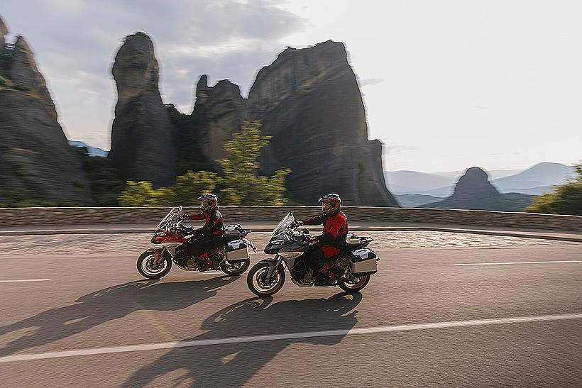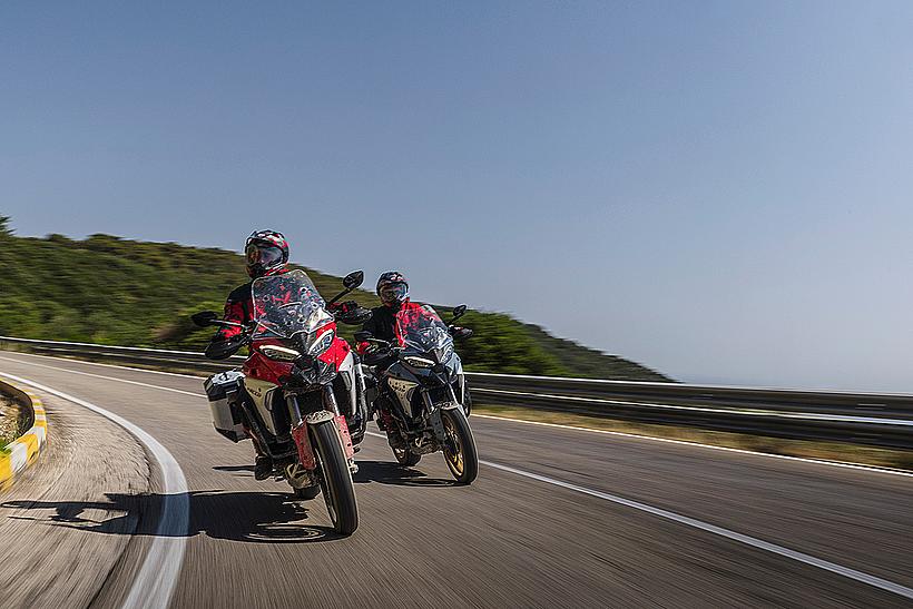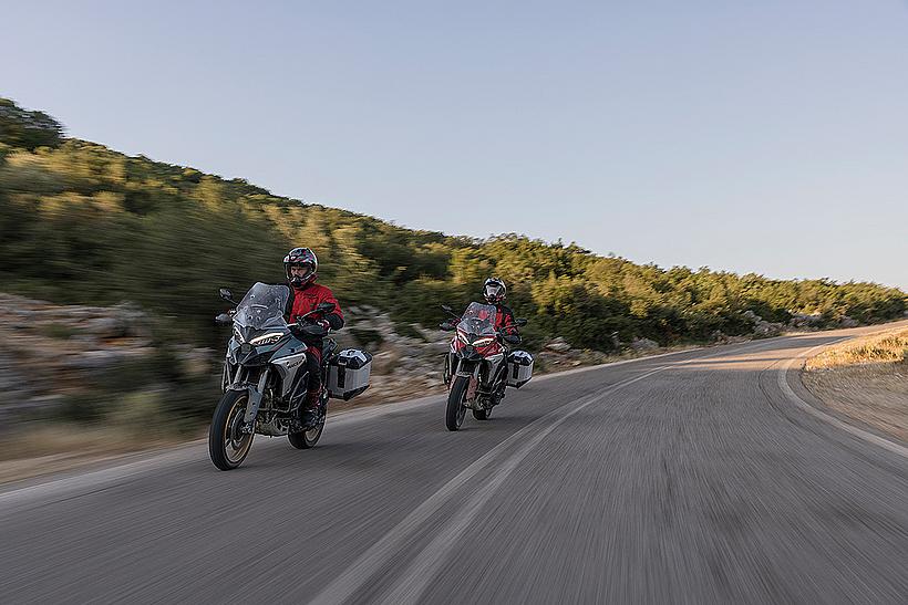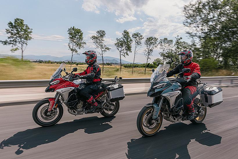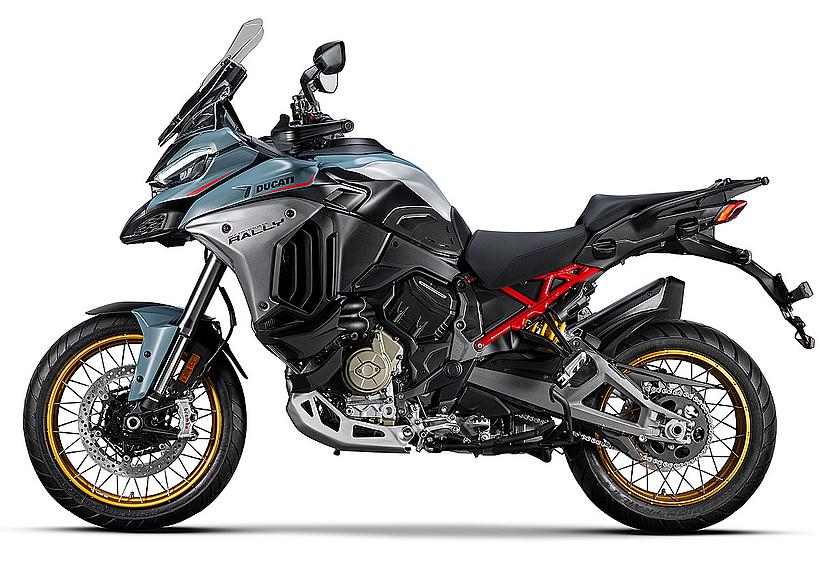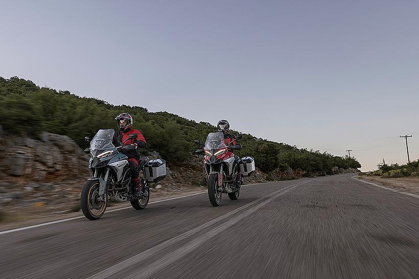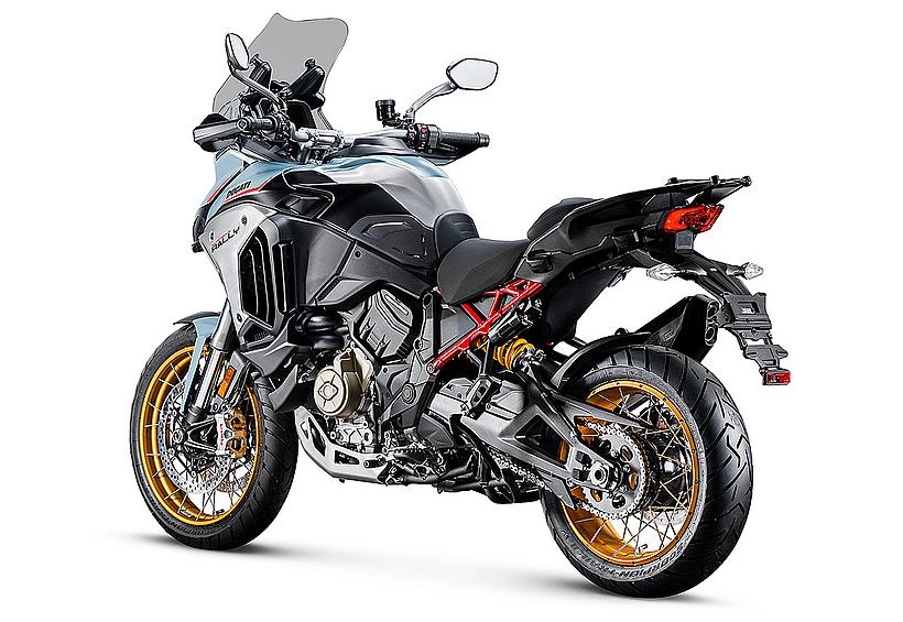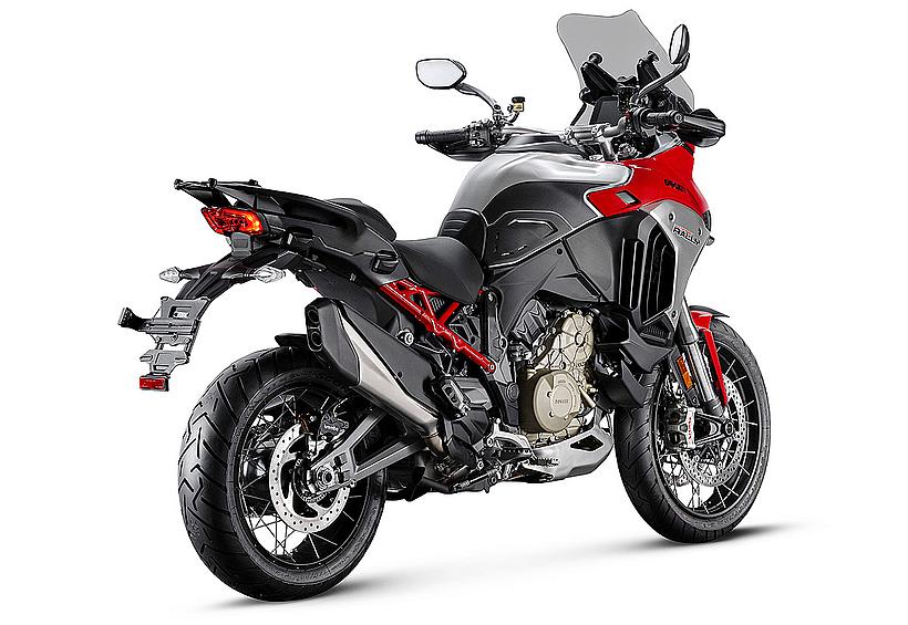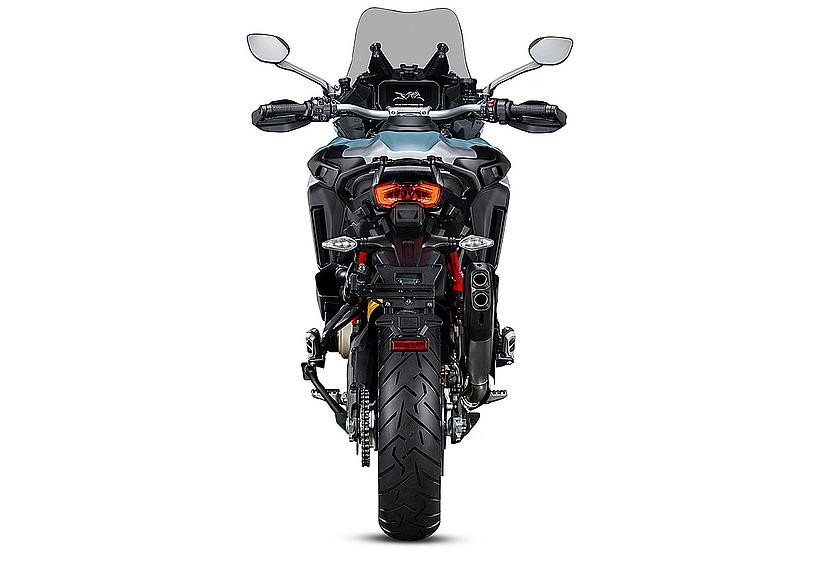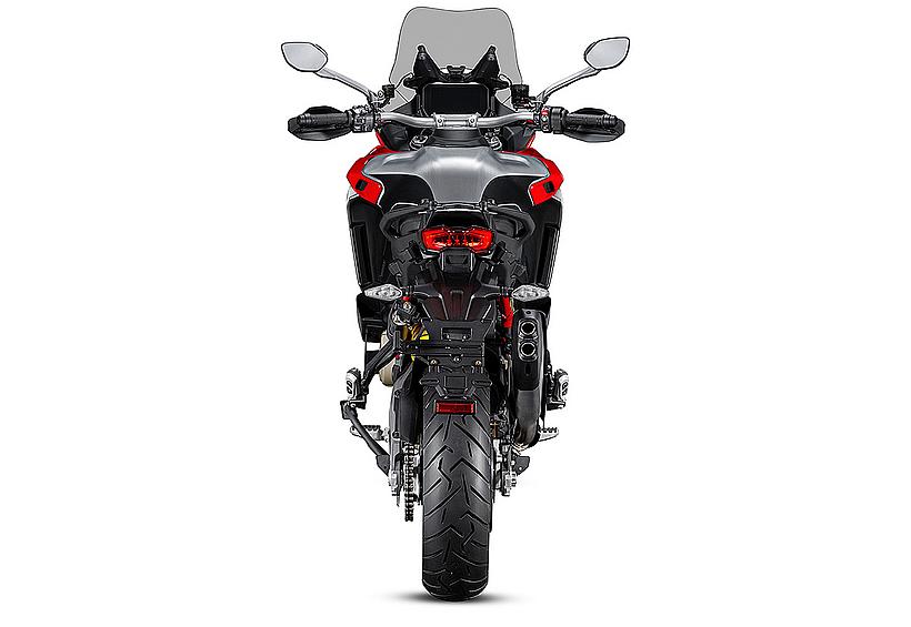 Alle Multistrada V4 FL Modelle erfüllen die strengen Euro 5+ Standards, wofür eine fortschrittliche Zylinderdeaktivierung und eine neue Auspuffanlage mit einem eleganten Schalldämpfer erforderlich waren. Der Verbrauch wurde um 6 % reduziert, während die CO2-Emissionen um 10 g/km gesenkt wurden. Trotz dieser Ergebnisse blieb die Motorleistung der Multistrada V4 mit 170 PS bei 10.750 U/min unverändert, und das Sounderlebnis konnte sogar verbessert werden.