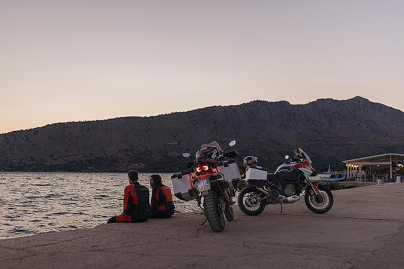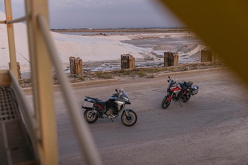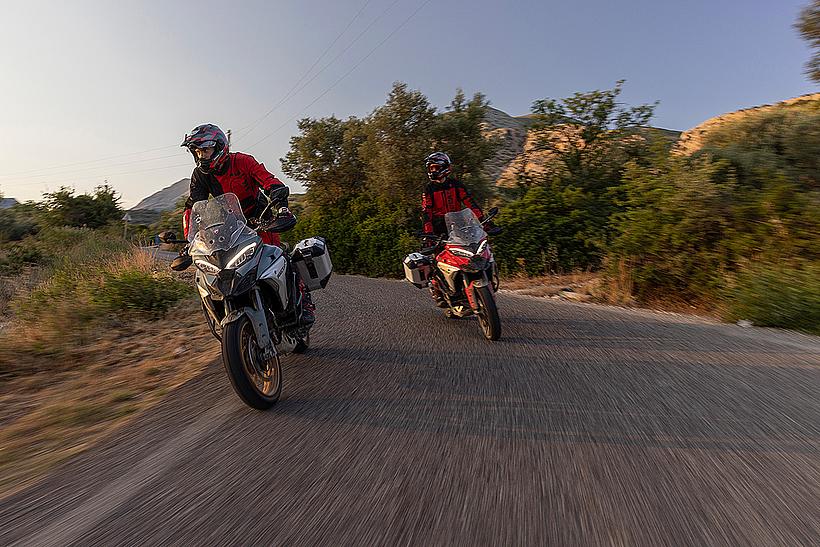 Der Riding Mode Enduro ermöglicht es der Multistrada V4 Rally, ihr Offroad-Potenzial optimal auszuschöpfen, unterstützt durch das 19-Zoll-Vorderrad, eine optimierte Ergonomie, die das Fahren im Stehen erleichtert, sowie das Mehr an Bodenfreiheit durch den erhöhten Federweg. Die Leistung wird in einem speziell für diesen Einsatz abgestimmten Powermode auf 114 PS begrenzt, das Ansprechverhalten ist jedoch spontaner als im gleich starken Urban-Modus – mit einer direkteren Reaktion. Die Fahrwerksabstimmung des adaptiven Fahrwerks wurde speziell für den Offroad-Einsatz konfiguriert und wird am Dashboard durch ein spezielles Symbol mit einem Offroad-Helm angezeigt. Die DTC- und DWC-Systeme werden auf die niedrigste Interventionsstufe gesetzt, während das ABS auf Stufe 1 eingestellt ist – ideal für Untergründe im Gelände. In dieser Einstellung sind die Cornering-Funktion und die Anti-Lift-Up-Funktion des ABS-Systems deaktiviert.