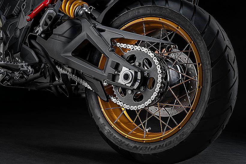 Der Ducati V4-Granturismo-Motor beeindruckt sowohl bei sportlicher Fahrweise, wo pure Leistung zählt, als auch im urbanen Umfeld, wo präzise Dosierung und sanftes Ansprechverhalten gefragt sind. Eine herausragende Eigenschaft des V4-Granturismo-Motors sind auch die Serviceintervalle: Kein Serienmotorrad erreicht dieses Niveau. Das Öl muss lediglich alle 15.000 km oder alle 24 Monate gewechselt werden, und das Ventilspiel wird sogar nur alle 60.000 km überprüft. Damit hat Ducati die Betriebskosten auf ein bemerkenswert niedriges Niveau gesenkt.