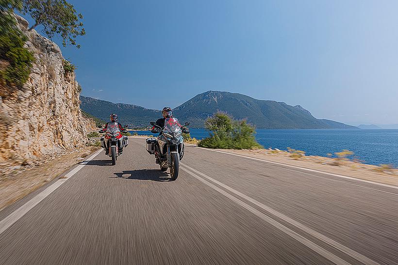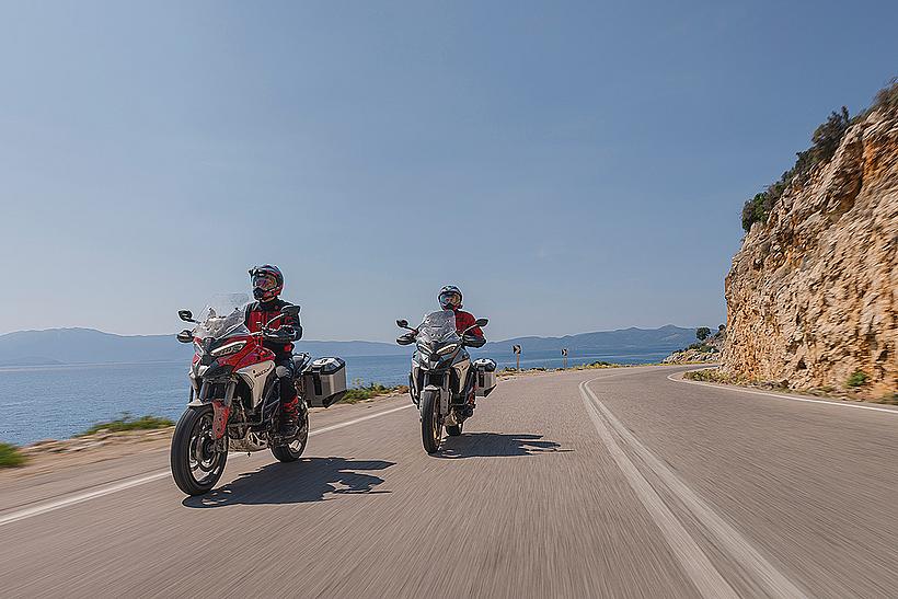 Die Multistrada ist mit einem vollwertigen Navigationssystem von SYGIC ausgestattet, das eine übersichtliche Kartenanzeige und umfangreiche Navigationsfunktionen bietet. Die Steuerung erfolgt bequem über die Schaltereinheiten am Lenker. Die speziell für Ducati entwickelte „Ducati Connect“-App ermöglicht zusätzlich die Nutzung des Smartphones und unterstützt in Verbindung mit der Helm-Gegensprechanlage auch das Musikhören. Das Smartphone lässt sich sicher in einem speziellen, belüfteten Fach am Tank verstauen und wird dabei über den integrierten USB-Anschluss zuverlässig mit Strom versorgt.