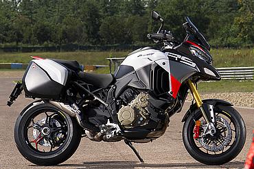 Die Multistrada V4-Modellreihe hebt das zentrale Prinzip der Vielseitigkeit auf ein neues Level. Jede Version ist mit spezifisch abgestimmten Riding Modes ausgestattet – Sport, Touring, Urban, Enduro und Wet – bei den Modellen RS und Pikes Peak ersetzt der Modus Race den Enduro-Modus. Diese Fahrmodi passen nicht nur die Motorleistung, das Ansprechverhalten und die Charakteristik an, sondern auch die Interventionen der Assistenzsysteme und – bei elektronisch einstellbarem Fahrwerk – die Fahrwerksabstimmung. So wird das Motorrad je nach Anforderung optimal konfiguriert: sportlich auf der Landstraße, komfortabel auf Tour, souverän im Stadtverkehr oder sicher bei Nässe und Offroad-Passagen. Robuste Seitenverkleidungen bieten Schutz bei Geländefahrten, während die beeindruckende Agilität sportlich ambitionierte Fahrer begeistert. Ein variables Koffersystem und ausgeklügelte Aerodynamik sorgen für maximalen Komfort auf langen Strecken. Im Stadtverkehr ermöglicht der Urban-Modus ein besonders handliches Fahrverhalten. Diese Generation der Multistrada bringt ein Maß an Vielseitigkeit auf die Straße, das bislang unerreicht ist – ein echtes Vier-in-eins-Konzept für Abenteuer, Sport, Alltag und Tour.