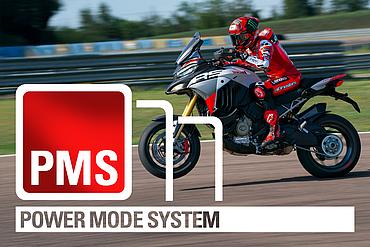 Die V4 RS ist die einzige Multistrada, die über den Modus „Full Power“ verfügt – standardmäßig dem Fahrmodus „Race“ zugeordnet, erkennbar an der karierten Flagge neben dem Namen. In diesem Modus steht die maximale Leistung in allen Gängen zur Verfügung, begleitet von einer besonders direkten und spontanen Gasannahme. Zum Vergleich: Der Modus „High“, der bei allen Multistrada V4-Modellen verfügbar ist, liefert zwar ebenfalls die volle Motorleistung, reduziert jedoch leicht das Drehmoment im 1., 2. und 3. Gang.