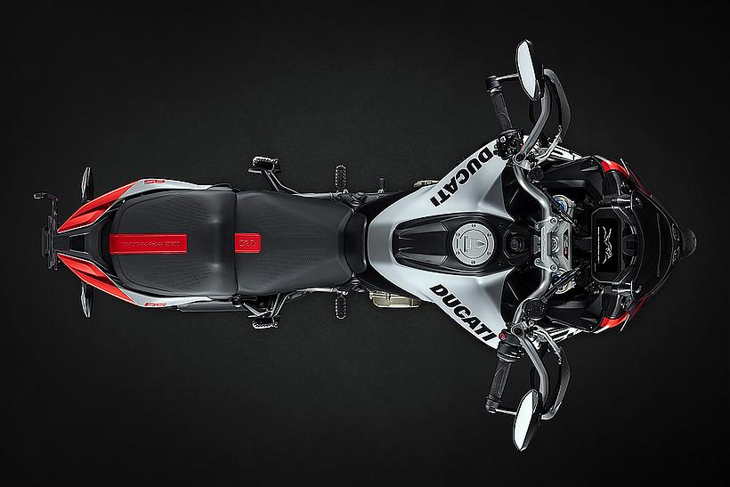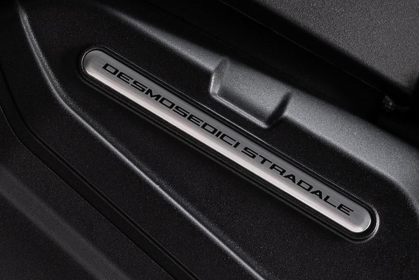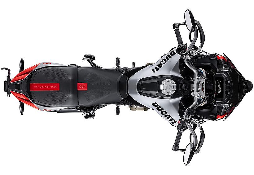 Das 6,5-Zoll-TFT-Farbdisplay ist mit einer Oberfläche aus Mineralglas ausgestattet, dem gleichen Material, das in modernen Smartphones verwendet wird. Dies bietet zwei Vorteile: Es verbessert die Sichtbarkeit, selbst bei direkter Sonneneinstrahlung, und reduziert Reflexionen. Die Informationen sind übersichtlich und gut lesbar, mit einem runden Drehzahlmesser mit digitaler Nadel in der Mitte sowie Anzeigen für den eingelegten Gang, Kraftstoffstand, Außentemperatur und Motortemperatur. Zudem zeigt das Display elektronische Kontrollstufen, Riding Modes und Fahrwerkseinstellungen an. Zusätzliche Informationen, wie die Einstellungen für die Federung, werden ebenfalls angezeigt, und über die GPS-Navigations-App Sygic wird das Kartenmaterial des Navigationssystems bereitgestellt. Dies ist der "Ducati Connect"-App zu verdanken, die eine Verbindung zum Smartphone herstellt und Funktionen wie das Überprüfen des Telefonbuchs, das einfache Beantworten eingehender Anrufe und das Hören von Musik über das Ducati Multimedia System (DMS) ermöglicht.