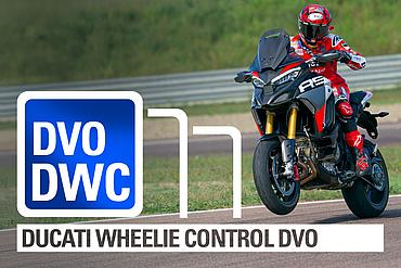 Die sportliche Auslegung des Elektronikpakets der Multistrada V4 RS wird auch optisch durch das Dashboard-Layout betont. Im Hauptbildschirm erscheint ein spezielles Bedienfeld, das sich am bekannten Track-Infomodus der Panigale V4 und Streetfighter V4 orientiert. Dieses Dropdown-Menü zeigt die jeweils aktiven Einstellungen für DTC, ABS und DWC abhängig vom gewählten Riding Mode. Zudem wird der Eingriff der Ducati Traction Control (DTC) sowie der Ducati Wheelie Control (DWC) visuell dargestellt: Ein Blinken der jeweiligen Symbole in der oberen rechten Ecke des Displays macht die aktiven Systeme sofort erkennbar – ein Plus an Transparenz und Kontrolle für sportlich ambitionierte Fahrer.