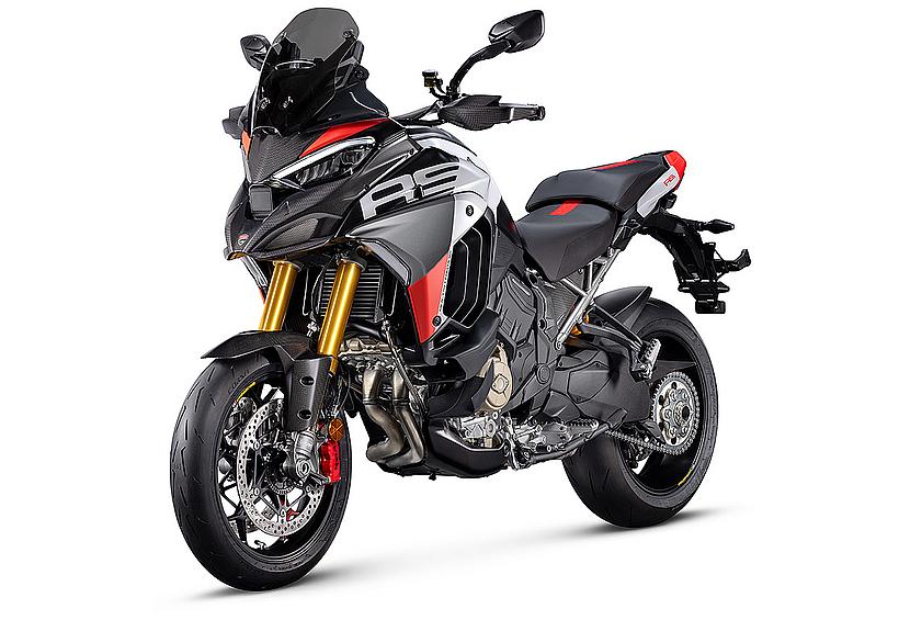 Der Desmosedici Stradale-Motor der Multistrada V4 RS liefert in seiner Euro 5+ Konfiguration beeindruckende 180 PS und erreicht erst bei 13.500 U/min den Drehzahlbegrenzer. Dieser Wert verspricht sowohl sportliche Fahrleistungen als auch die ausgewogene Charakteristik, die die Multistrada V4 seit ihrer ersten Version auszeichnet. Zur optimalen Nutzung der Desmosedici Stradale-Performance wurde die Endübersetzung verkürzt, während die internen Getriebeübersetzungen unverändert blieben. Zusätzlich wurde der Luftfilter von der Panigale V4 R übernommen, und die Verwendung einer speziellen Auspuffanlage mit einem Akrapovič-Schalldämpfer trägt zur Erzielung dieser beeindruckenden Leistung bei.