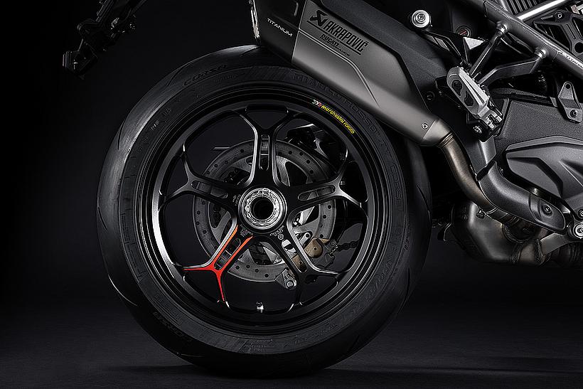 Das Chassis der Multistrada V4 RS unterscheidet sich grundlegend von dem der Standard-Multistrada V4 und wurde um das 17-Zoll-Vorderrad entwickelt, um ein Höchstmaß an Präzision und Agilität auf der Straße zu bieten. Für optimalen Grip und sportliche Performance sorgen Pirelli Diablo Rosso IV Corsa Reifen in der Dimension 120/70 ZR17 vorne und 190/55 ZR17 hinten. Die neu gestalteten, geschmiedeten Aluminiumfelgen von Marchesini im leichten 5/10-Speichen-Y-Design reduzieren die ungefederten Massen und tragen maßgeblich zur Fahrstabilität und Präzision bei.