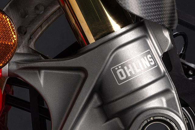 Die Multistrada V4 RS und die Pikes Peak sind mit einer elektronischen Öhlins-Federung ausgestattet. Das sogenannte Smart EC 2.0-System – auch bekannt aus der Panigale V4 S und der Streetfighter V4 S – zählt zu den fortschrittlichsten „ereignisbasierten“ Fahrwerksystemen auf dem Markt. Im Gegensatz zum Skyhook-System der Multistrada V4 S, das sich in erster Linie an Fahrbahnunebenheiten orientiert, passt das Fahrwerk der Multistrada V4 Pikes Peak seine Abstimmung aktiv an den Fahrstil des Fahrers an. Mit anderen Worten: Je sportlicher der Fahrer unterwegs ist, desto straffer und dynamischer wird das Setup. Jeder Fahrmodus ist dabei mit einer spezifischen Fahrwerksstrategie verknüpft, sodass das System automatisch die optimale Einstellung für die jeweilige Fahrsituation wählen kann. Zudem lässt sich das Basis-Setup direkt über das Cockpit individuell anpassen – über ein besonders intuitives und benutzerfreundliches Menü.