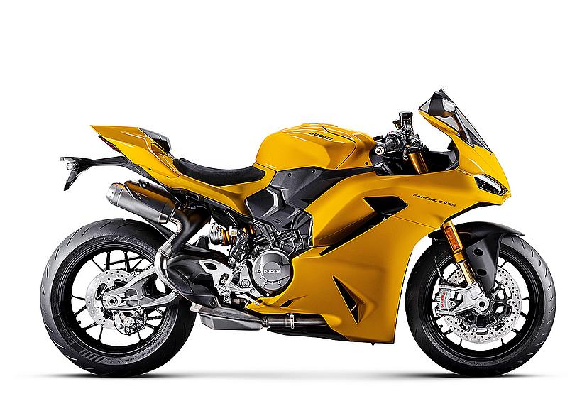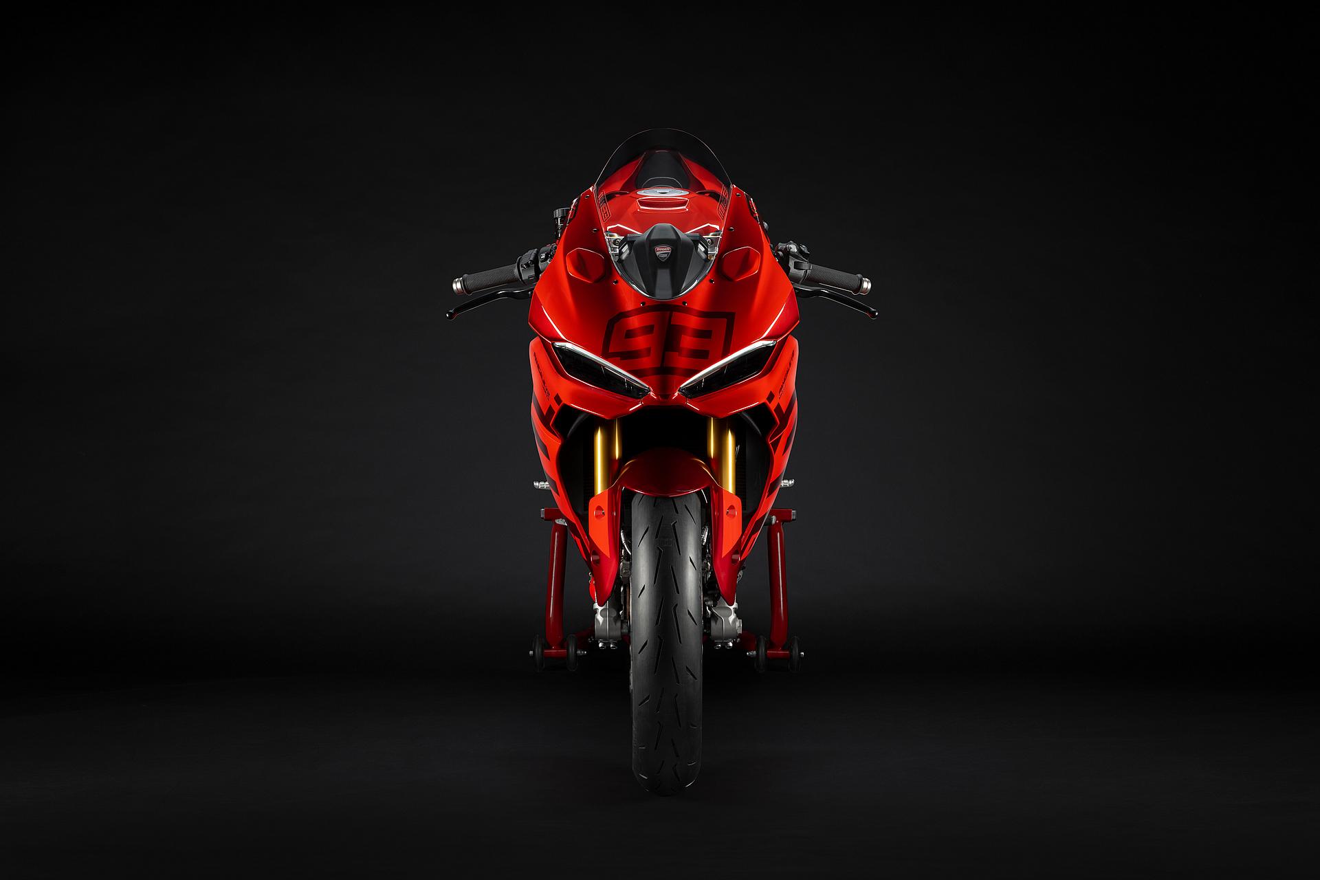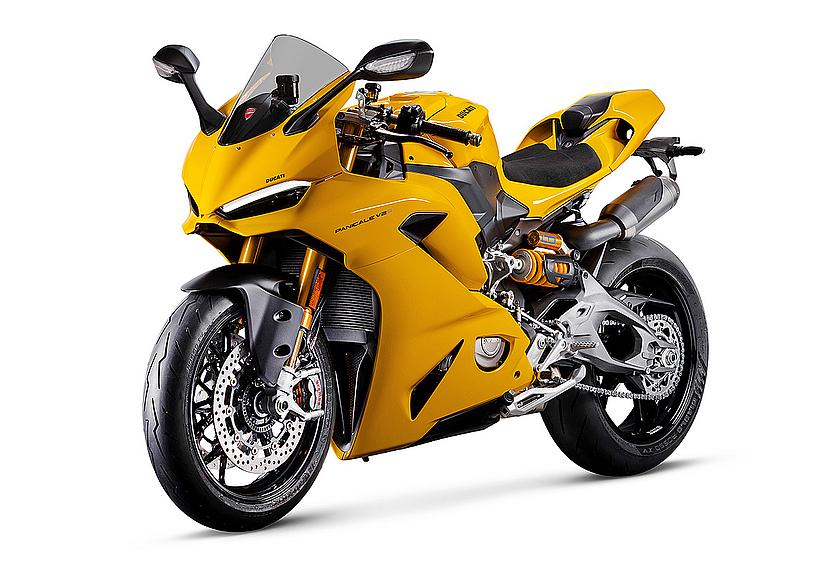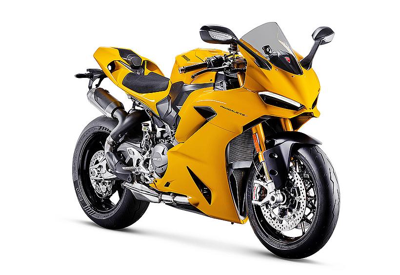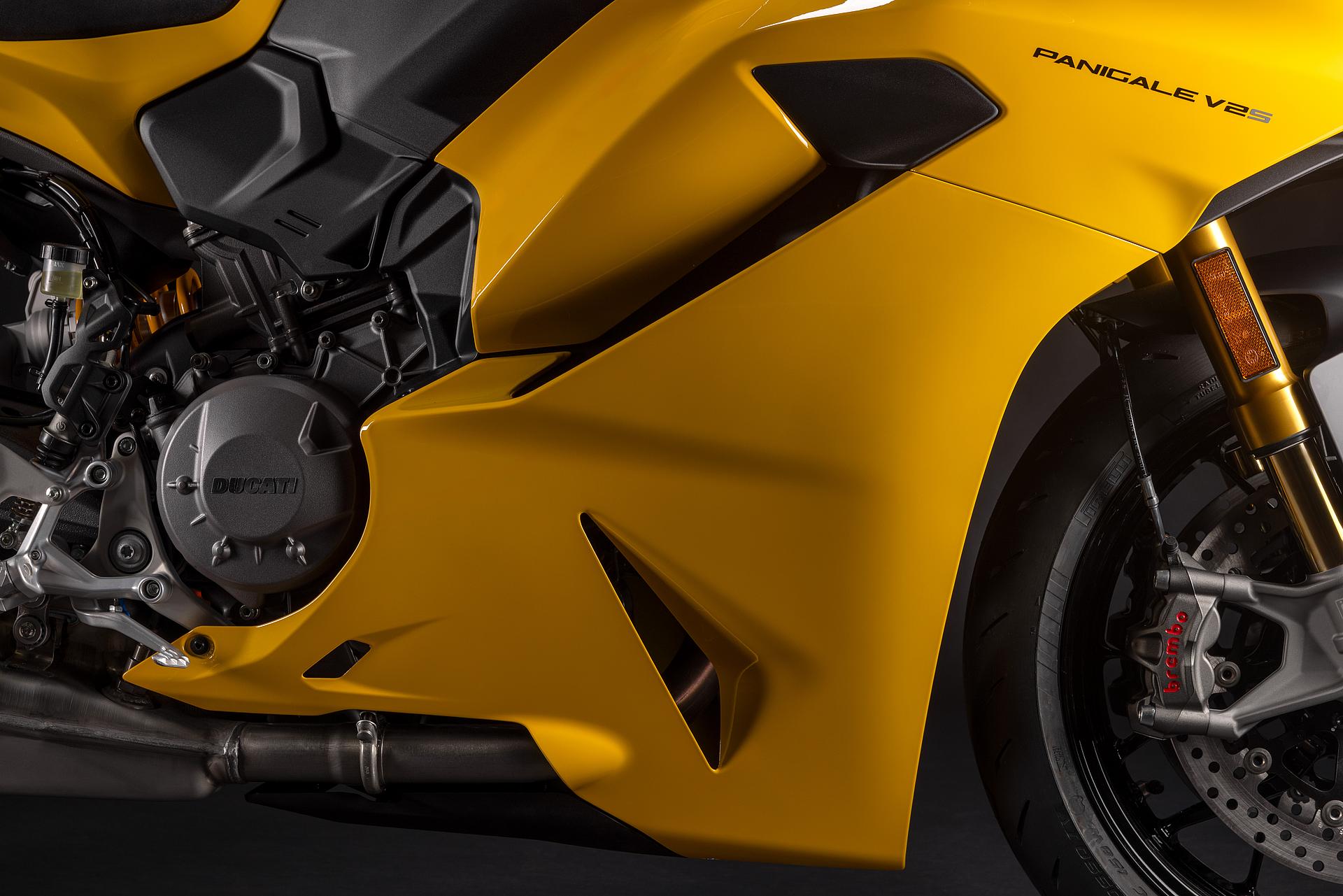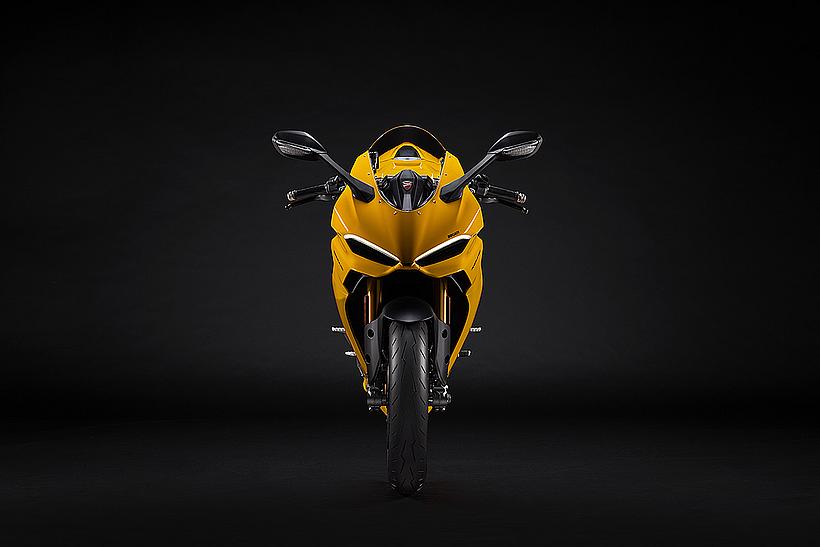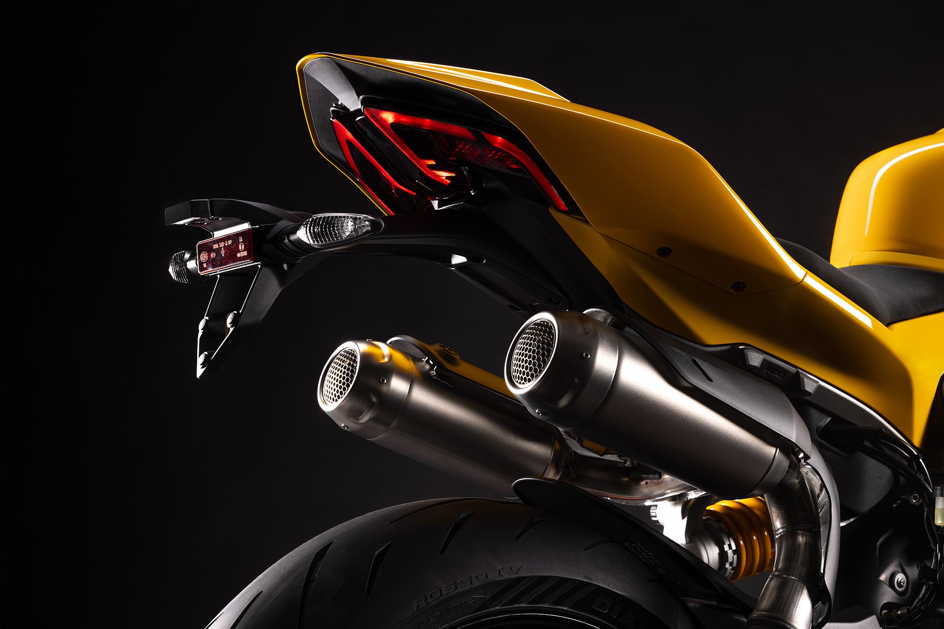 Die Front orientiert sich klar am Design der neuen Panigale V4. Der Voll-LED-Scheinwerfer mit dem auffälligen Tagfahrlicht (DRL) verleiht dem Motorrad denselben dominanten und aggressiven „Look“ und wird von lackierten Flächen im unteren Bereich eingerahmt – einem neuen, markanten Stilmerkmal der Panigale-Familie.