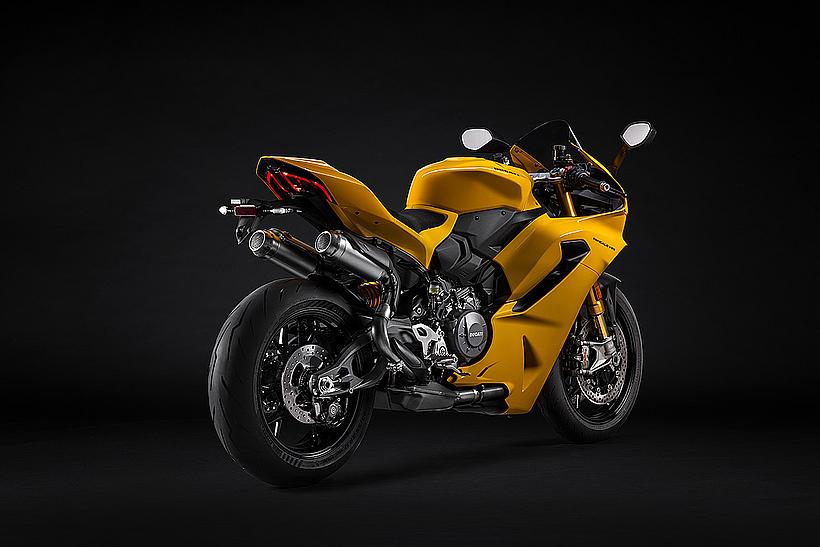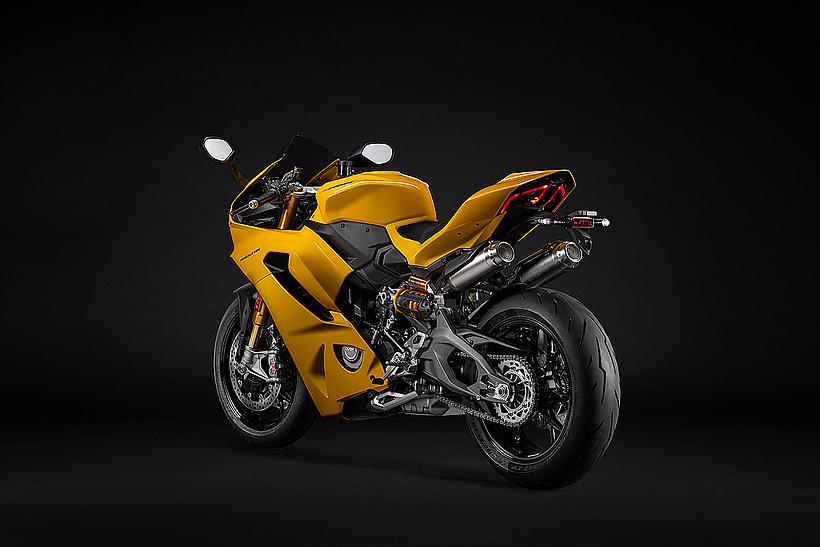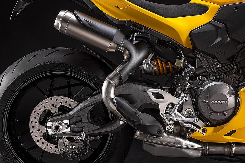 Die neue Zweiarmschwinge, die direkt am Motor befestigt ist, besteht aus einer speziellen Aluminiumlegierung und wurde im Druckgussverfahren gefertigt, was eine Reduzierung der durchschnittlichen Dicke der Struktur und damit des Gewichts ermöglichte. Das äußere Design erinnert an die Ducati Hollow Symmetrical Swingarm der neuen Panigale V4 und liefert dieselben Vorteile beim Fahren in Bezug auf mechanischen Grip, Stabilität am Kurvenausgang, Präzision beim Schließen der Linie in der Kurvenmitte und Linientreue.