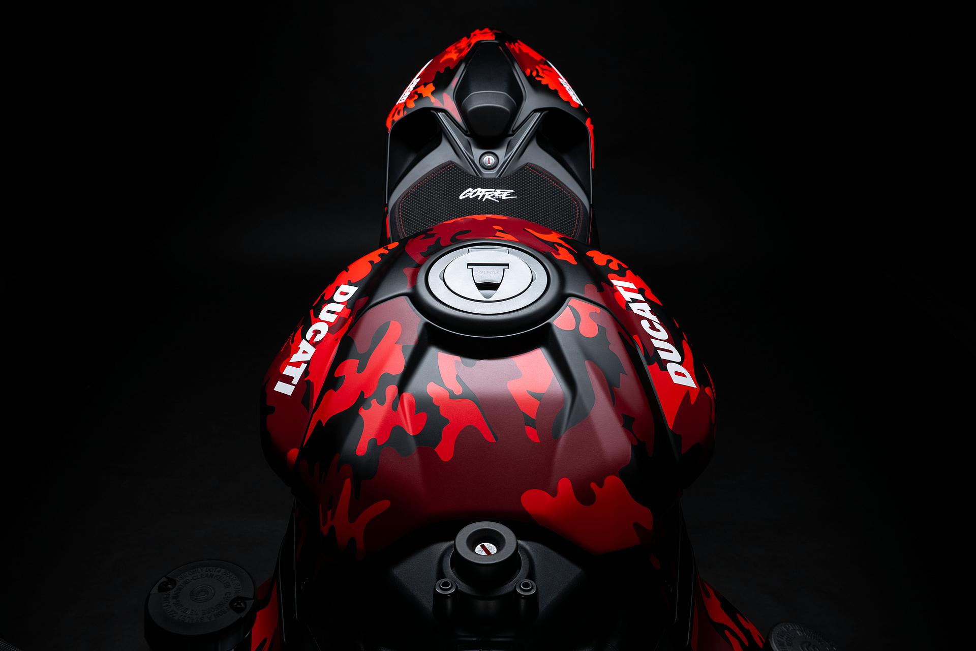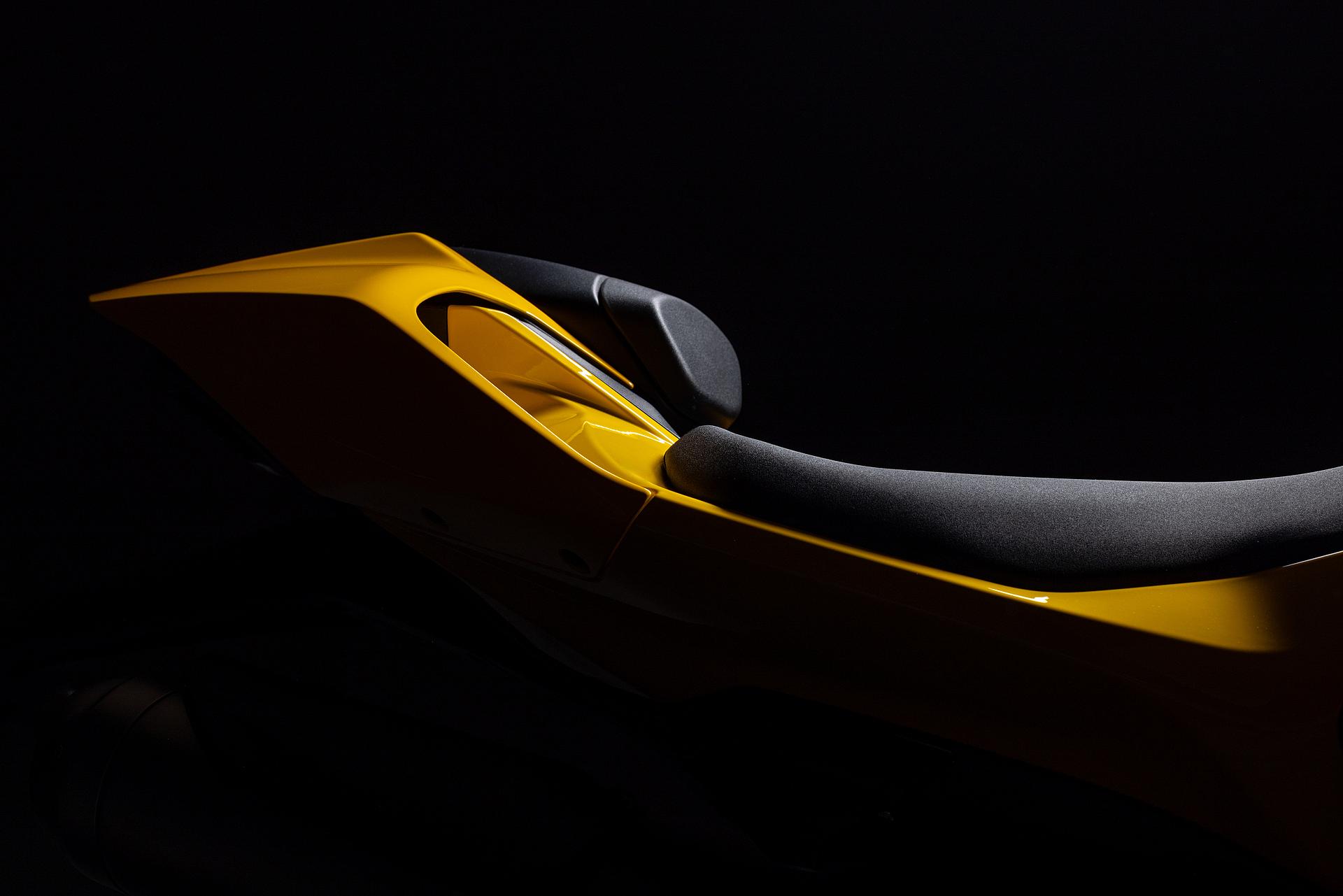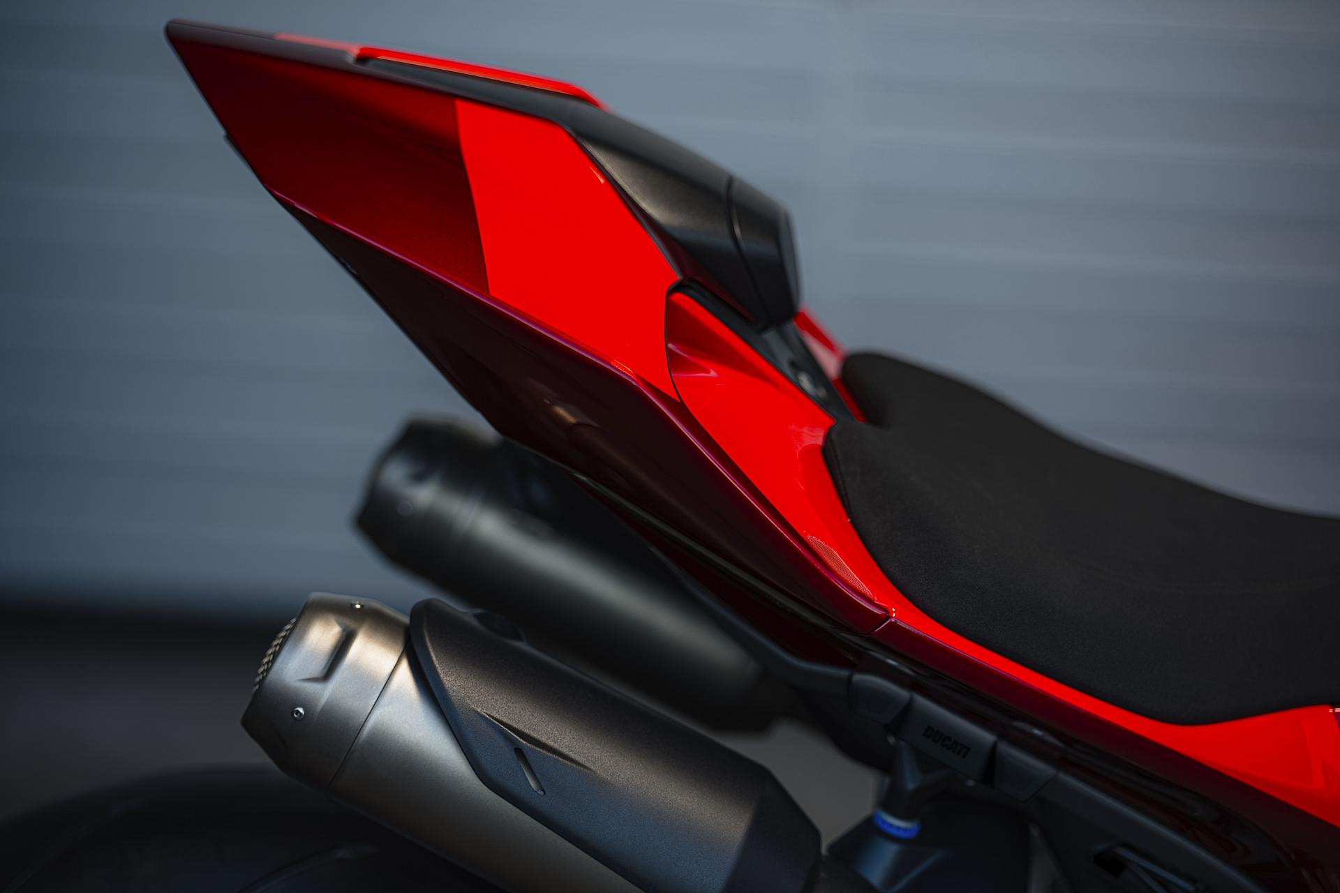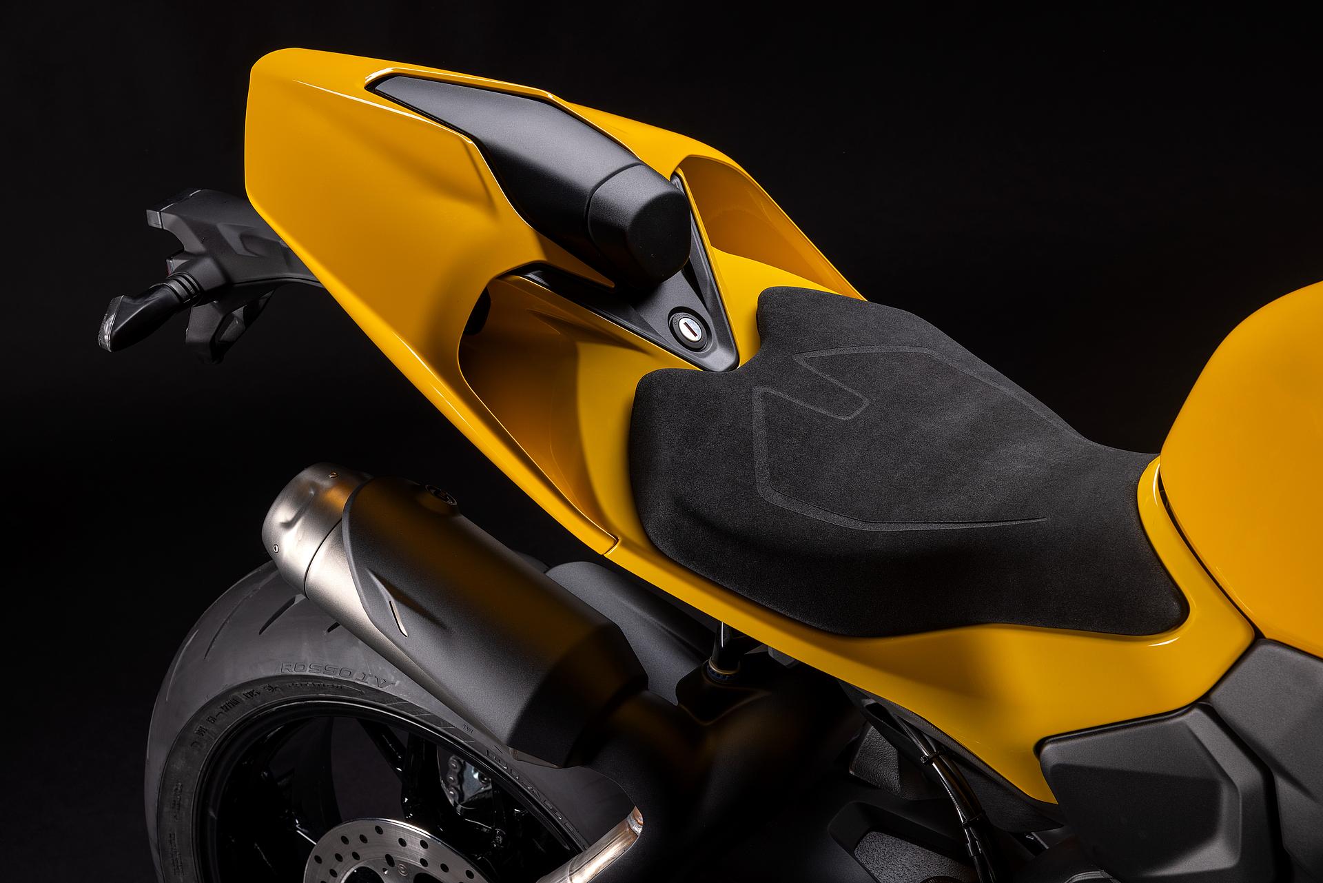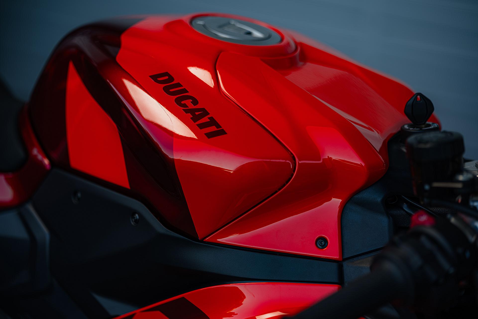 Der Tank wurde speziell in Größe und Form entwickelt, um den Fahrer bei sportlicher Fahrweise zu unterstützen. Das Design erinnert an die Panigale V4, wurde aber an die Ergonomie der V2 angepasst – für noch mehr Kontrolle und Fahrspaß in jeder Kurve.