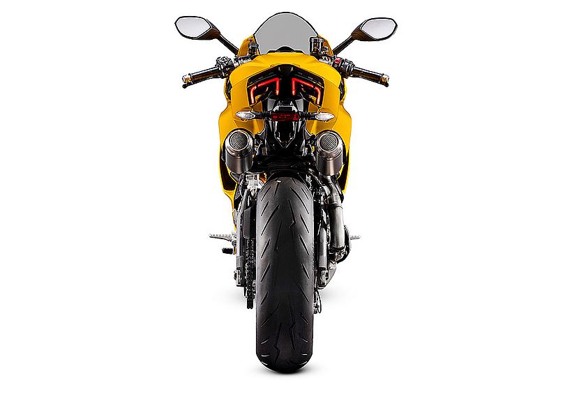 Die vierte Generation der Pirelli-Reifen für Supersportler und Naked Bikes, der Diablo Rosso IV, setzt neue Maßstäbe. Dieser Reifen bietet nicht nur außergewöhnlichen Grip, sondern auch präzises Feedback und überragende Fahrzeugkontrolle – sowohl auf trockenen als auch auf nassen Straßen. Dank seines speziellen Profildesigns und der fortschrittlichen Karkassenstruktur gewährleistet der Diablo Rosso IV herausragenden Grip beim Bremsen, exzellente Traktion und optimale Wasserableitung bei Nässe. Vorne kommt die Dimension 120/70 zum Einsatz, hinten entschied man sich für einen 190/55er der auch bei den auf der Rennstrecken eine gute Figur macht. Im Rennbetrieb können auch Pirelli Diablo Superbike Slicks 180/60 oder 190/60 verwendet werden, die gleiche Dimension, die in der Supersport-Weltmeisterschaft zum Einsatz kommt. Für diese Reifen sind auch Reifenmischungen wie der SC0 oder der superweiche SCX für schnelle Runden erhältlich.