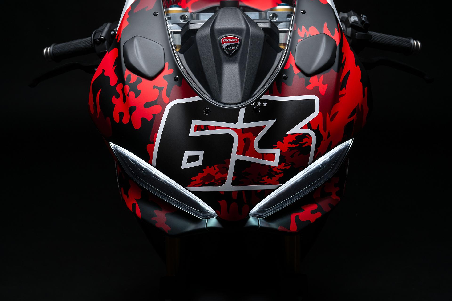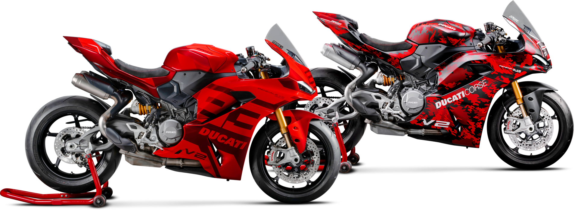 Zwei Helden, zwei Lackierungen, zwei einzigartige Versionen. Die Panigale V2 MM93 und die Panigale V2 FB63 tragen die Kürzel, mit denen die Ingenieure von Ducati Corse die Rennmaschinen ihrer Werkspiloten intern bezeichnen. Basierend auf der Panigale V2 S verkörpern beide Sondermodelle das Maximum an technischer und ästhetischer Perfektion. Sie sind ausgestattet mit geschmiedeten Rädern, einem Öhlins-Lenkungsdämpfer, tiefer positionierten Lenkerstummeln, einer aus dem Vollen gefrästen oberen Gabelbrücke, Sportgriffen und einer Racing-Verkleidungsscheibe – ein echtes Nonplusultra in ihrer Klasse.Die Lackierung der FB63 ist vom Helm Pecco Bagnaias inspiriert, während die MM93 die auffälligen Farben aufgreift, die Marc Márquez beim MotoGP-Test nach dem Saisonfinale 2024 in Barcelona trug. Erfahre mehr über diese beiden Sondermodelle: