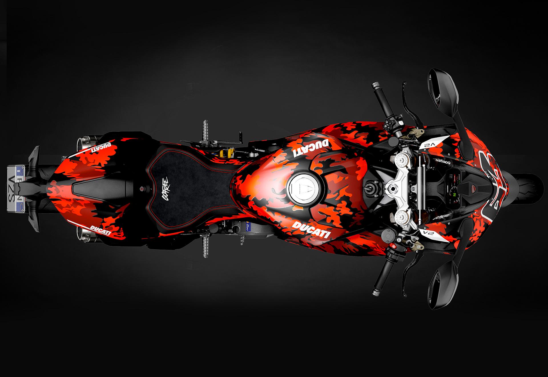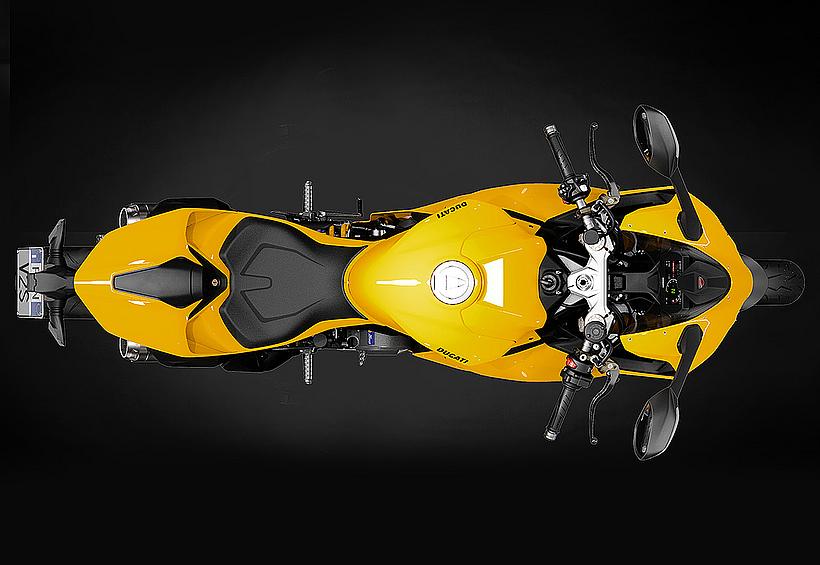 Die Funktionen des Elektronikpakets der neuesten Generation, dessen Bedienelemente und Funktionen von denen der Panigale V4 abgeleitet sind, werden über ein 5"-TFT-Dashboard im Format 16:9 angezeigt und über einen “Petal”-Joystick gesteuert. Um die Übersichtlichkeit und Eleganz des neuen Dashboards zu unterstreichen, wurden die Warnleuchten mit Ausnahme der roten LED-Überdrehzahlanzeige von der Außenmaske entfernt und ins Innere des Dashboards verlegt. Der Drehzahlmesser und die Ganganzeige blinken und werden grün, um den empfohlenen Gangwechsels anzuzeigen, und rot, um den Eingriff des Drehzahlbegrenzers zu signalisieren. Während des Einfahrens leuchtet der Drehzahlmesser orange, wenn die empfohlene Drehzahl überschritten wird. Das Dashboard verfügt über drei Anzeigemodi namens Road, Road Pro und Track, alle mit automatischer Umschaltung zwischen Tag- und Nachtbeleuchtung, die sich durch die Art der angezeigten Informationen und die grafische Darstellung unterscheiden. Mit dem „Joystick“ am Lenker kann man während der Fahrt direkt zwischen den verschiedenen Info-Modi wechseln. Das Dashboard ermöglicht auch die Bluetooth-Kopplung mit einem Smartphone und einem Kommunikationssystem am Helm, um Musik abzuspielen, Anrufe entgegenzunehmen und die Anweisungen des Turn-by-Turn-Navigationsgeräts zu hören, sofern diese Systeme installiert wurden.