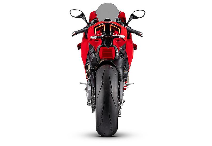 Die Racing-Auspuffanlage von Akrapovič aus reinem Titan, mit Schalldämpfern unter dem Heck, steigert die Leistung auf bis zu 228 PS bei 13.750 U/min und erreicht ein Drehmoment von…