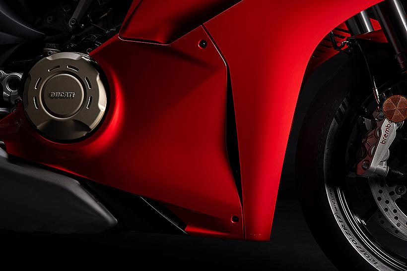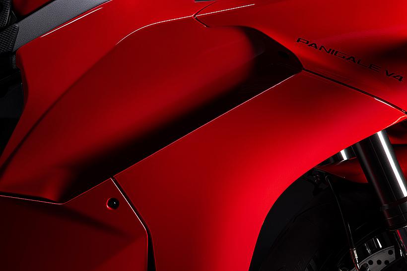 Die neue Verkleidung reduziert den Luftwiderstand um 4 % und schützt den Fahrer besser, indem sie eine Art „Luftblase“ aus ruhiger Luft bildet. Besonders an den Händen und Schultern bietet die Verkleidung zusätzlichen Schutz. Die hocheffizienten Winglets sind nahtlos in die Front integriert und bestehen aus zwei Elementen – dem Hauptflügel und dem Klappenflügel, die durch einen Schlitz voneinander getrennt sind. Der Abtrieb der kompakteren Winglets bleibt im Vergleich zum Vorgängermodell unverändert. Die veränderte Form der Verkleidungsvorderkante verbessert die Agilität des Motorrads bei Richtungswechseln, insbesondere bei hoher Geschwindigkeit. Gleichzeitig optimieren die angepasste Form des Kotflügels und die Luftführungen vor den Kühlern die Effizienz des Kühlsystems, insbesondere des Ölkühlers.