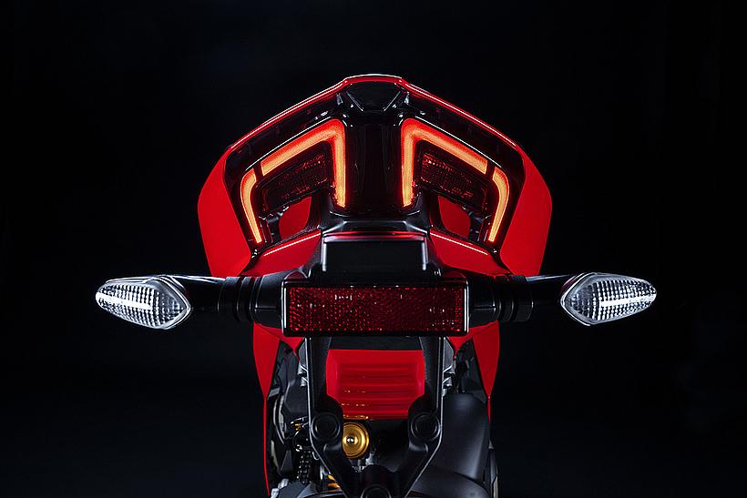 Der Full-LED-Scheinwerfer verfügt über ein extrem schlankes, V-förmiges Tagfahrlicht, das eine Hommage an die Ducati 916 darstellt, und der Scheinwerfer integriert auch die Blinker…
