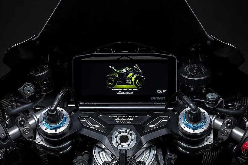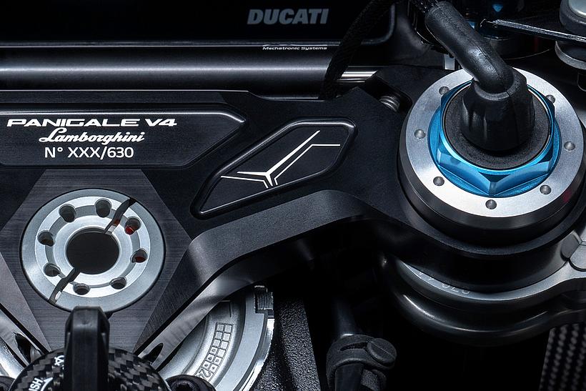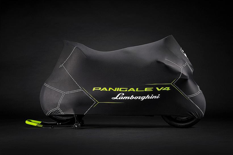 Jede Panigale V4 Lamborghini wird mit einem Echtheitszertifikat und einer speziellen Motorradabdeckung geliefert, die in einer eigens gestalteten Box im Lamborghini-Design zu finden ist. Darüber hinaus erfolgt die Auslieferung in einer exklusiven, maßgefertigten Holzkiste, die einen speziell lackierten Boxenständer enthält – farblich perfekt abgestimmt auf die Lackierung des Motorrads.
