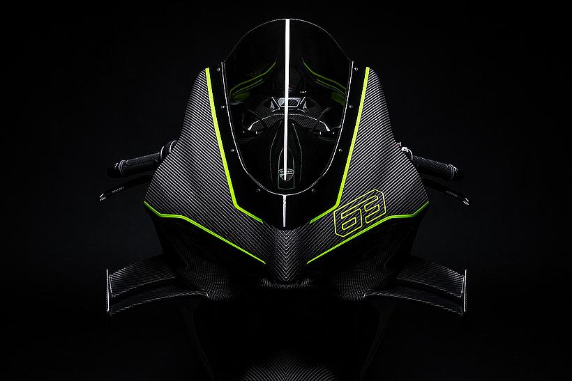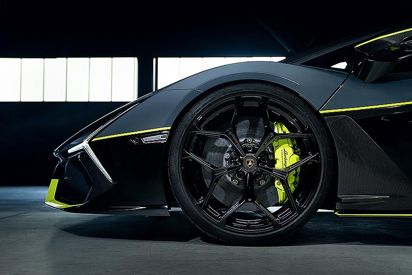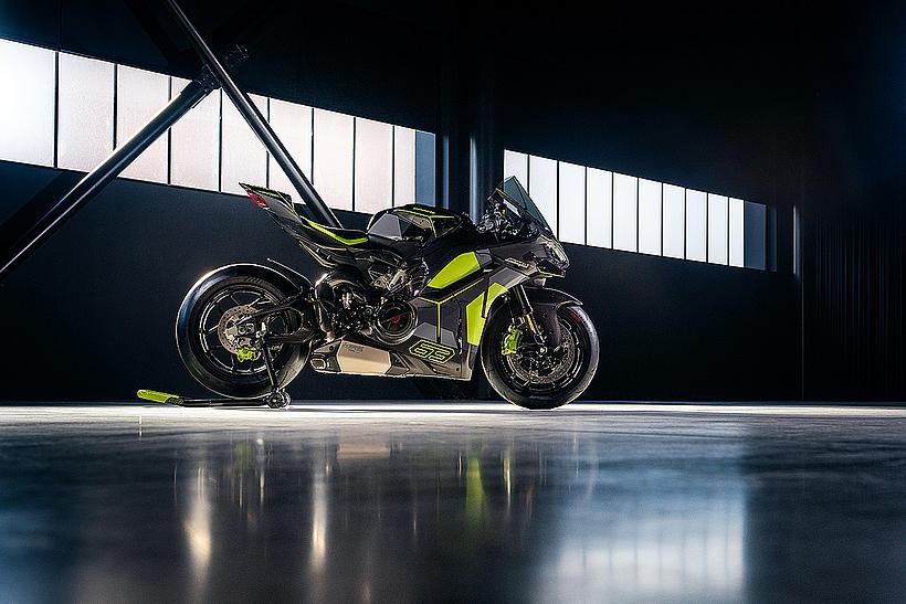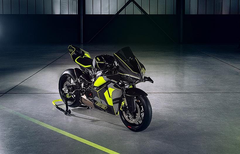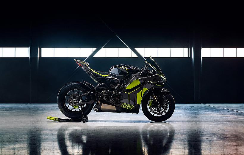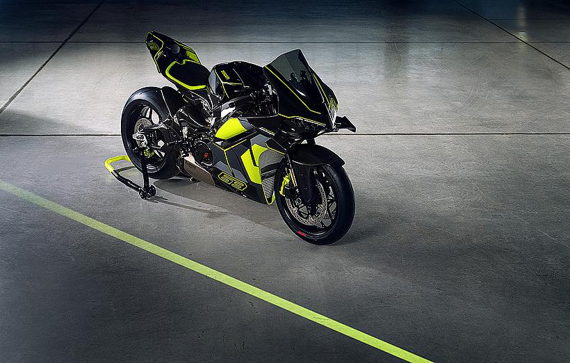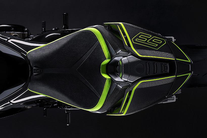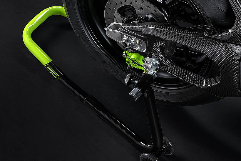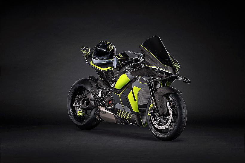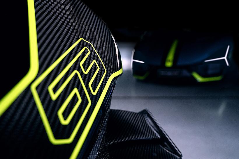 Das Design des Hecks ist von Lamborghini Revuelto inspiriert und greift die markanten Formen der Lüftungsöffnungen der Motorhaube auf. Auch die Winglets, die sich von denen der Panigale V4 S unterscheiden, orientieren sich an typischen Designelementen des Supersportwagens. Auf der Sitzbank findet sich das charakteristische „Y“ in Scandal Green – ein Detail, das sich auch in den Sitzen des Originals wiederfindet, die geschmiedeten Aluminiumräder verfügen über Y-förmige Speichen und die Carbonfasern sind entlang der Fahrzeugmittellinie in einem Twill-Gewebe mit Fischgrätmuster verarbeitet, ganz im Stil des Lamborghini Revuelto.