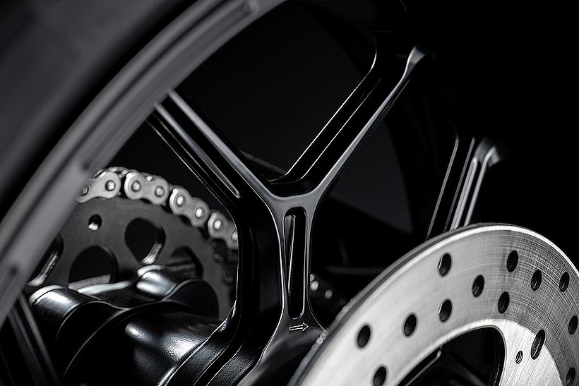 Die Schwinge der Panigale V4 7G ist mit monolithischen Kettenspannern ausgestattet – einer Technologie, die direkt aus der MotoGP stammt. Diese hochpräzisen Kettenspanner ermöglichen nicht nur eine schnelle und millimetergenaue Einstellung der Kettenspannung, sondern halten das Hinterrad auch beim Einbau exakt in Position. Das Rad selbst liegt dabei auf einer präzise gefrästen Führungsrille auf und bleibt auch ohne eingesetzte Achse an Ort und Stelle. Dadurch bleibt die Kettenspannung beim Reifenwechsel unverändert – ein Nachjustieren ist nicht erforderlich, da die Spanner automatisch wieder in die zuvor eingestellte Position zurückkehren. Der Radwechsel gestaltet sich dadurch genauso einfach und schnell wie bei einer Einarmschwinge – und lässt sich problemlos ohne fremde Hilfe durchführen. Der Kettenspanner auf der linken Seite besteht aus hochfestem, CNC-gefrästem Aluminium, um den Belastungen des Kettenzugs dauerhaft standzuhalten.