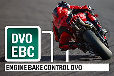 Das EBC (Engine Brake Control) DVO wurde weiterentwickelt, um die Fahrzeugstabilität auch unter extremen Bedingungen beim Kurveneingang zu optimieren. Dabei gleicht es die Kräfte aus, die durch den intensiven Einsatz der Motorbremse auf den Hinterreifen wirken. Dank der Integration des Ducati Vehicle Observer (DVO) berücksichtigt das System nicht nur Daten zu Schräglage, Gasgriffstellung, gewähltem Gang und Kurbelwellenverzögerung, sondern auch zusätzliche physikalische Parameter, die durch den Algorithmus berechnet werden. So kann die Panigale V4 R während der Verzögerung die Motorbremse dynamisch modulieren – abhängig von der geschätzten Radlast am Hinterrad und dem maximal übertragbaren Bremsmoment. Überschreitet ein Drift mit dem Hinterrad den voreingestellten Grenzwert, öffnet das System präzise die Drosselklappen, um die auf den Reifen wirkenden Drehmomentkräfte neu auszubalancieren und so die Traktion wiederherzustellen.