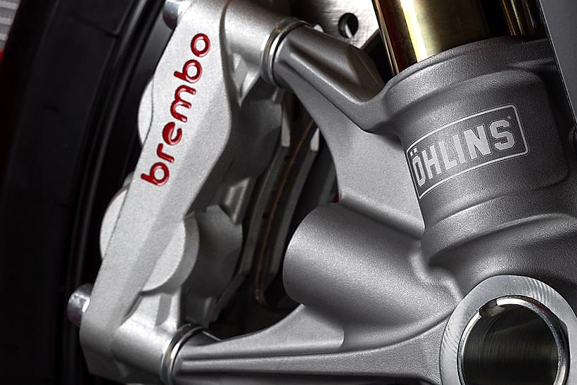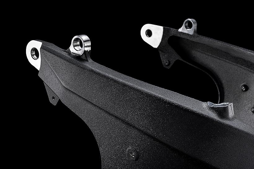 Wie bei den SBK-Rennmotorrädern erfolgt die Höhenverstellung des Hecks über die Federbein-Umlenkung und nicht über die Veränderung der Dämpferlänge. Die aus Stahl gefertigte, gelagerte Umlenkstange basiert auf einem Design aus der Superbike-Welt. Im Vergleich zum bisherigen System erlaubt diese eine präzisere Abstimmung und bietet einen deutlich größeren Einstellbereich (32,4 mm gegenüber 13 mm).