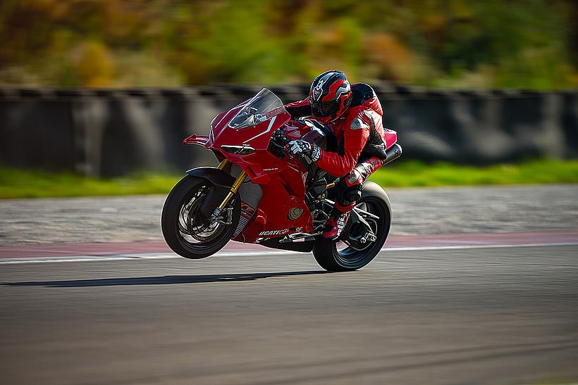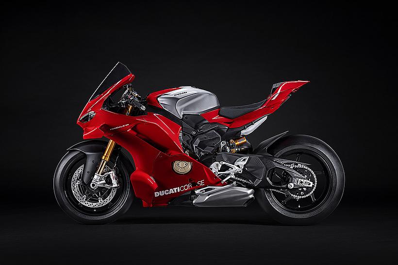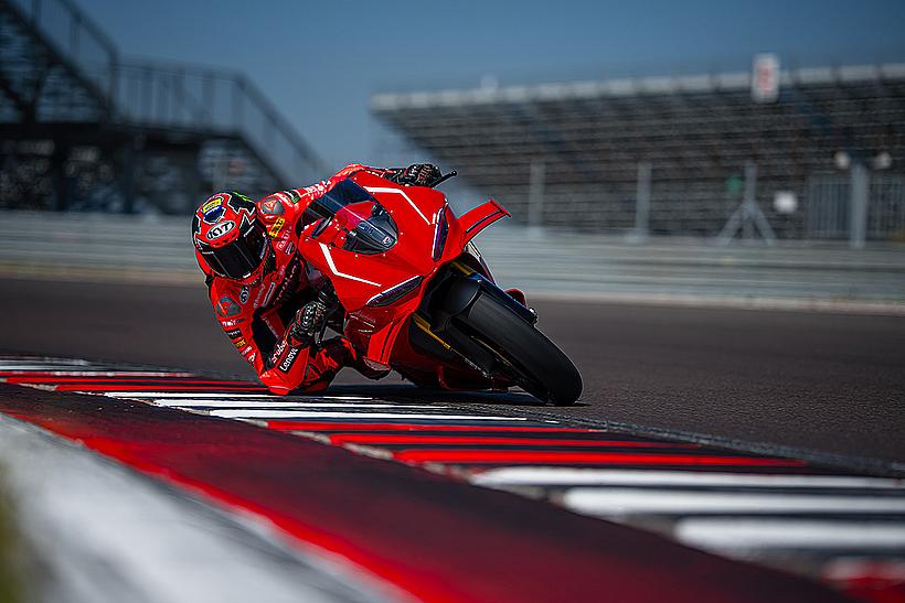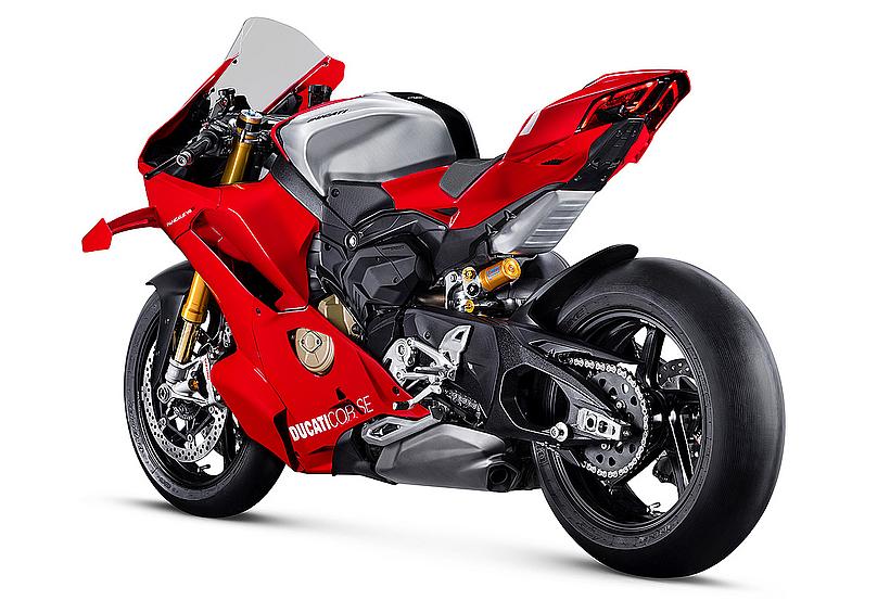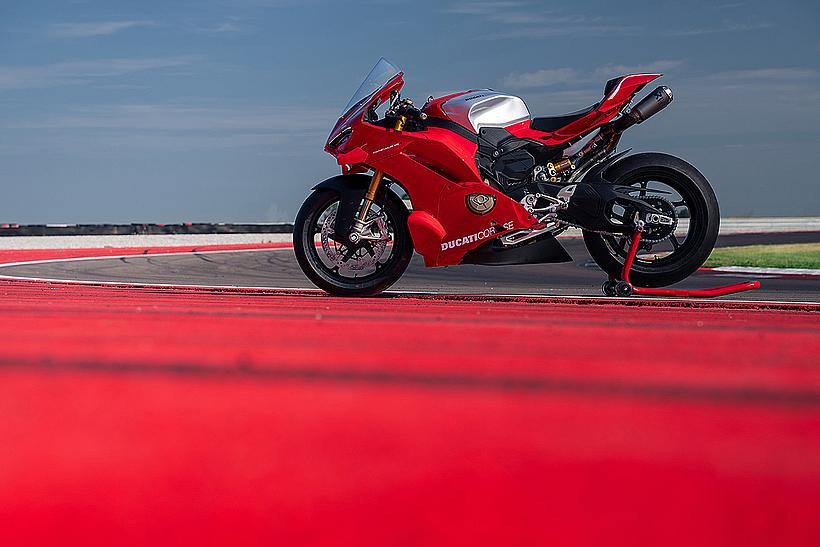 Der Desmosedici Stradale R – das Bindeglied zwischen dem 1.103 cm³ V4 der Panigale V4 und dem MotoGP-Motor – hebt die Leistung eines straßenzugelassenen Motors in beispiellose Höhen. Für den Einsatz in der Superbike-Weltmeisterschaft konzipiert, hat dieser 998 cm³-Motor zahlreiche Änderungen erfahren, die ihn noch dichter an das MotoGP-Aggregat bringen. Der Panigale V4 R-Motor leistet maximal 218 PS (162 kW) bei 15.500 U/min (EURO5+-Homologationswerte) und hat ein Verdichtungsverhältnis von 14,0:1. Der Drehzahlbegrenzer erlaubt 16.000 U/min, im sechsten Gang sogar 16.500 U/min. Diese Werte – beeindruckend für einen 998 cm³-Motor – lassen sich aber noch weiter steigern. Mit dem Ducati Performance Racing-Auspuff von Akrapovič und einem neuen Racing-Öl von Shell kann eine Leistung von 239 PS erreicht werden.