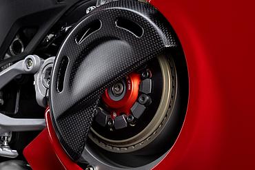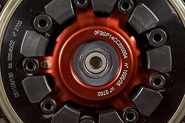 Felgen müssen robust und gleichzeitig leicht sein mit möglichst wenig Masse außen, um das Trägheitsmoment gering zu halten. In diesem Zusammenhang sind die Struktur und Dichte des Materials von großer Bedeutung. Die geschmiedeten 5/10-Speichen-Leichtmetallfelgen der Panigale V4 R, inspiriert von der Desmosedici GP, durchlaufen einen aufwendigen Produktionsprozess. Es handelt sich um ein Schmiedeverfahren, bei dem das Metall in einer Form unter hoher Temperatur mit Hilfe einer Presse verdichtet wird. Das Ergebnis: leichtere Felgen (2,95 kg vorne und 4,15 kg hinten) und ein dadurch reduzierter gyroskopischer Effekt, der ein Plus an Fahrdynamik bringt und sich positiv auf die Bremsperformance auswirkt. Zusätzlich reduziert sich das Aufstellmoment bei Bremsmanövern in Schräglage. Optional sind Felgen aus Carbon erhältlich, die das Gewicht um weitere 0,95 kg senken.