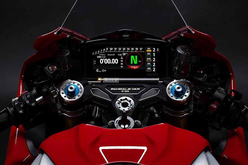Ducati war 2012 der erste Hersteller, der mit der 1199 Panigale ein Full-TFT-Farbdisplay in ein Motorrad integrierte. Mit der Panigale V4 7G und Streetfighter V4 3G setzt Ducati erneut Maßstäbe: Das hochauflösende 6,9-Zoll-Full-TFT-Display im Seitenverhältnis 8:3 (1.280 x 480 Pixel) zeigt eine Vielzahl an Informationen mit optimaler visueller Klarheit an, ohne die Sicht des Fahrers in der aerodynamischen Fahrposition zu beeinträchtigen. Das Dashboard nutzt die Optical Bonding-Technologie, die auch bei Smartphones zum Einsatz kommt. Anstelle einer Kunststoffbeschichtung schützt eine verklebte Glasschicht den Bildschirm, die keinen direkten Kontakt zum Display hat. Dies gewährleistet eine hervorragende Lesbarkeit der Informationen, selbst bei Tageslicht. Der innere Bereich des Drehzahlmessers und die grüne LED am oberen Rand des Dashboards leuchten grün, wenn es Zeit zum Hochschalten ist, und wechseln auf Rot, wenn der Drehzahlbegrenzer erreicht wird. Die Navigation erfolgt über einen Schalter am linken Handgriff.