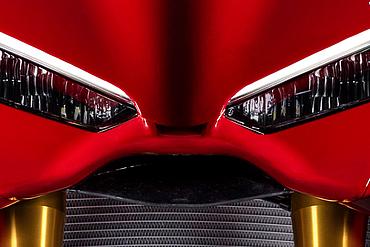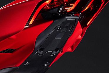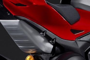 Wie bei allen „R-Modellen“ aus Bologna setzt auch die Panigale V4 R auf die kompromisslose Rennsport-Seele, die diese Motorräder seit jeher in der WorldSBK auszeichnet. Das klassische Ducati-Rot der Verkleidung steht in starkem Kontrast zum schwarz lackierten Rahmen und der Einarmschwinge. Der aus gebürstetem Aluminium gefertigte Tank verleiht der V4 R zusätzlich eine aggressive, technisch-puristische Note. Kompakte Proportionen, scharfe Linien und modernste, aus der Aerodynamikforschung abgeleitete Lösungen verschmelzen zu einer ebenso radikalen wie eleganten Ästhetik. Gebaut, um Grenzen neu zu definieren.