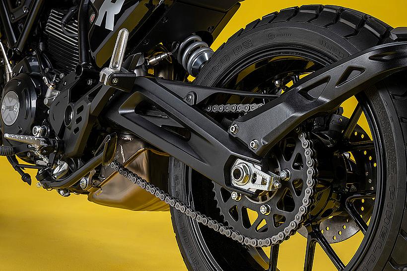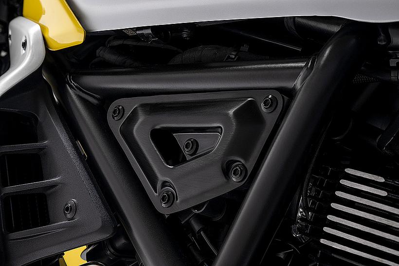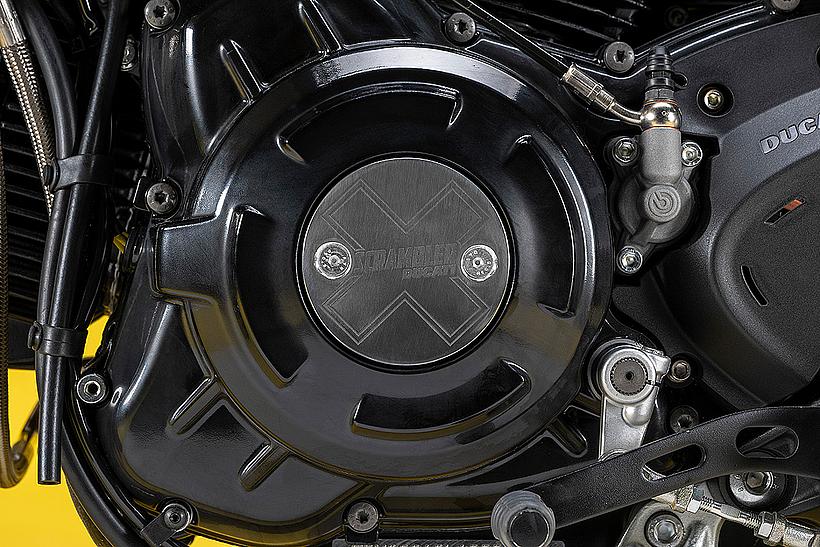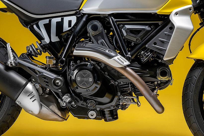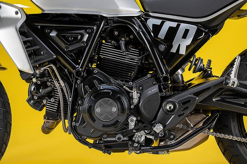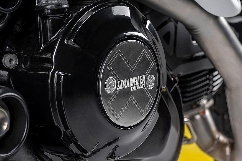 Der Motor, ein wesentlicher Teil der Persönlichkeit der neuen Ducati Scrambler, wurde ebenfalls einem optischen Update unterzogen: schwarz lackiert, mit gefrästen und polierten Kühlrippen sowie neuen Kupplungs- und Lichtmaschinenabdeckungen mit dem „X“-Logo. Um den Dark-Style zu betonen, wurde der Motor bei der Scrambler Icon Dark komplett in Schwarz gehalten.