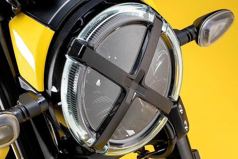 Das vordere Tagfahrlicht (DRL) ist dank seiner vier Sektoren sofort erkennbar. Der Full-LED-Scheinwerfer bewahrt das markante „X“, das an das Klebeband erinnert, das in den 70ern auf den Scheinwerfern von Geländemotorrädern verwendet wurde. Auch das Design des Rücklichts hat sich weiterentwickelt, bleibt jedoch der klassischen Halbkreisform treu. Letztendlich sind nun alle Lichtquellen, einschließlich der Blinker, mit moderner LED-Technik bestückt.