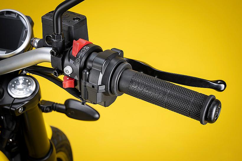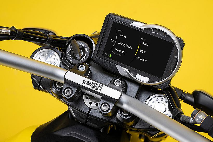 Die Vielseitigkeit der Ducati Scrambler zeigt sich auch darin, dass dieses Modell für das Ducati Multimedia-System (DMS) vorbereitet ist. Nach dem Aufsteigen verbindet sich das Motorrad automatisch über Bluetooth mit dem Smartphone und ermöglicht dem Fahrer die einfache Steuerung der wichtigsten Multimediafunktionen. Das Dashboard informiert über die abgespielte Musik, zeigt das Symbol neuer Textnachrichten oder den Namen des Anrufers an. Telefonanrufe und Musik können nun bequem über ein Freisprechsystem im Helm gehört werden.